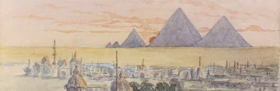 [London sketchbook used in the Mediterranean], 1881. Small oblong 8vo (8,5 x 13 cm). Album (sketchbook) containing 28 pencil drawings (1 double-page), 2 colored drawings and 4 watercolors (1 double-page ) with handwritten captions in English. Half checkered black morocco. With advertising label of "Lechertier, Barbe & Co. Artists colourmen and Stationers, Regent Street, London" with prices of the various sketchbooks for sale; at the head the artists(?) initials and date: "J.M. 1881". 70 pp. Full description