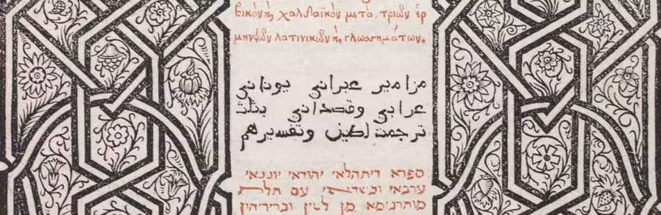 Vienna, widow of A. Strauss, 1835. 8vo. With two identical plates showing the golden necklace around a calligraphic Arabic inscription, the necklace hand-coloured in gold and the inscription in blue, as a frontispiece for both the Arabic and the German text (on the first and the last page). The Arabic title is incorporated into a printed circular medallion with decorative points at the head and foot on the first page, and the main Arabic text opens on the back of the same leaf with an elaborate headpiece. Text set in German and Arabic. Contemporary green calf (spine faded to brown), with a gold- and blind-stamped frame on each board. [1], [1 blank], 54 pp. (German text); 27, [1] ll. (Arabic text). Full description