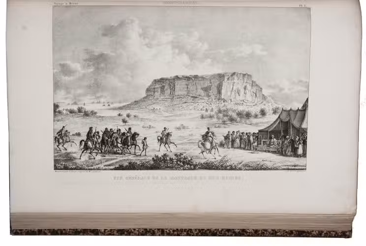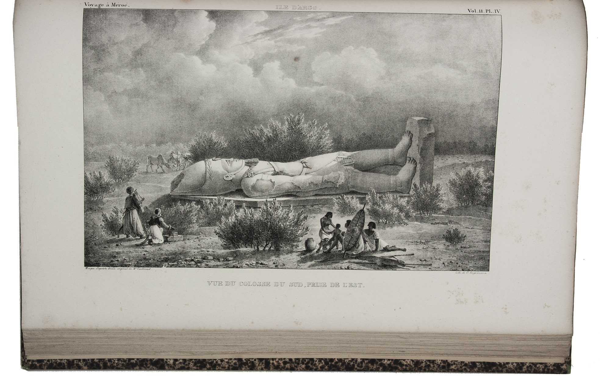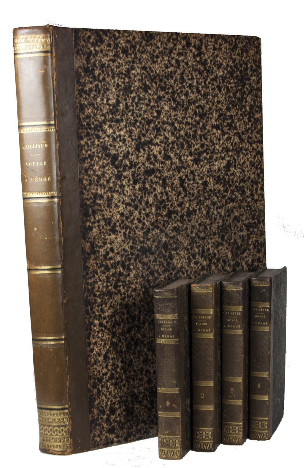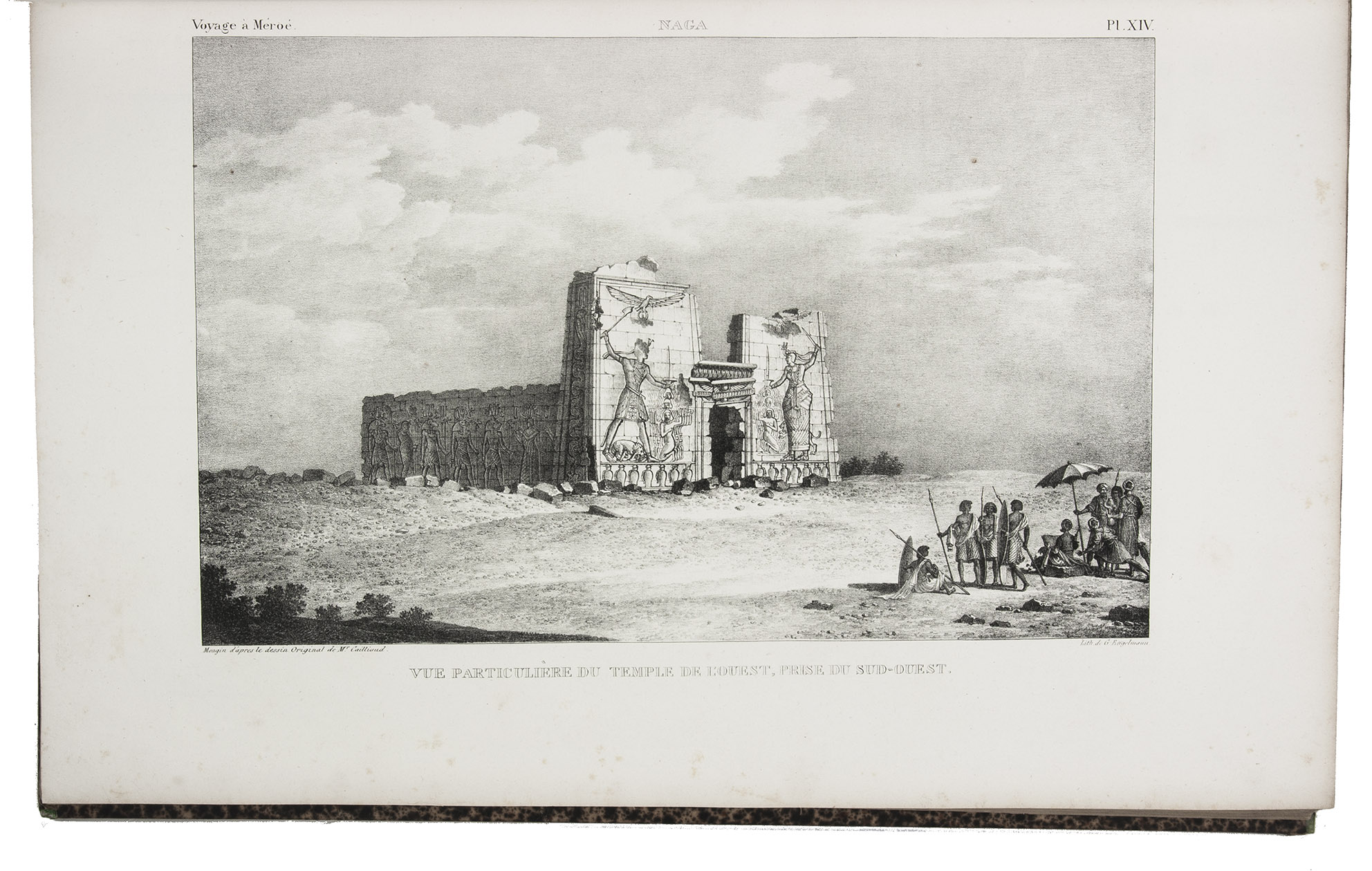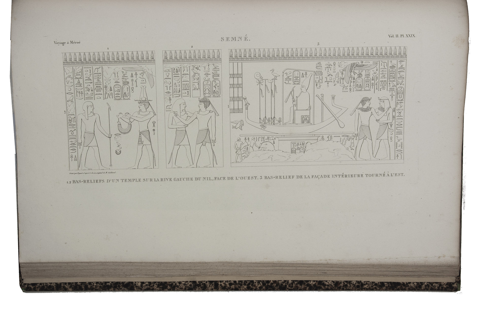 First edition of Cailliaud's narrative of his second journey through Egypt, Ethiopia and Nubia (Sudan), "still today an inestimable source of documentation. Caill[i]aud discovered the pyramids of Bergrawiya (Meroe) in 1821 and published the first detailed map of Nubia" (Bardeschi). He first travelled to the oasis of Siwa, where he got word that in Cairo Ismail Pasha was preparing a punitive expedition to Nubia. Cailliaud promptly proceeded to Cairo, where he joined Ismail's party. In Nubia he explored the famous ruins of the ancient city of Meroë and then travelled by boat to Sennar. Proceeding further south along the Blue Nile, the expedition reached Fazogl, near the Ethiopian border, where Cailliaud searched for gold mines. The party returned to Sennar, where Ismail received a message from his father demanding his return to Egypt.