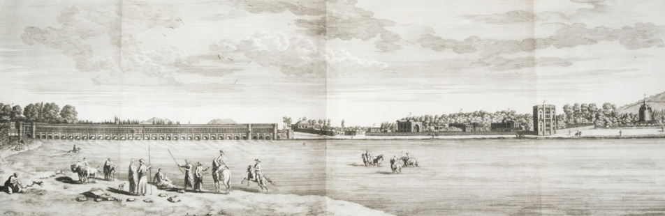 Lisbon, Regia officina typografica, 1774. 4 volumes. Small 8vo. With a woodcut of Albuquerques coat of arms on all four title-pages, engraved portrait, an engraved illustration above the dedication, large engraved folding map and woodcut illustration in text. The map reaches from Egypt and Madagascar in the west to the Philippines and New Guinea in the east, including the Arabian Peninsula, the south of China, the east coast of Africa and most of the East Indies. Contemporary Portuguese mottled sheepskin with gold-tooled spines with red title labels, blue sprinkled edges, marbled endpapers. [6], XXX, [14], 343, [1]; [12], 285, [1], [2 blank]; [12], 289, [1], [2 blank]; [12], 256 pp. Full description