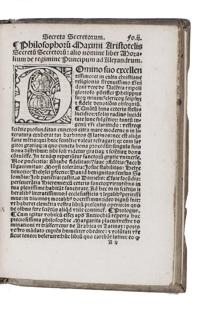 Four of the works in the present collection are pseudo-Aristotelian works that had been well known since the 13th century or earlier. The Secreta secretorum is here present in the translation of Philip of Tripoli; the De signis aquarum, ventorum et tempestatum on weather signs, was translated in the 13th century by Bartholomew of Messina; the third pseudo-Aristotle is De mineralibus on gems; the fourth, Alexandri Macedonis ad Aristotelem de mirabilibus Indie, is a fictitious letter by Alexander the Great to his teacher Aristotle, describing the wonders of India and the East. All four of them were accepted during the later Middle Ages as reliable literary portraits of the Indians, especially of the Brahmans.
