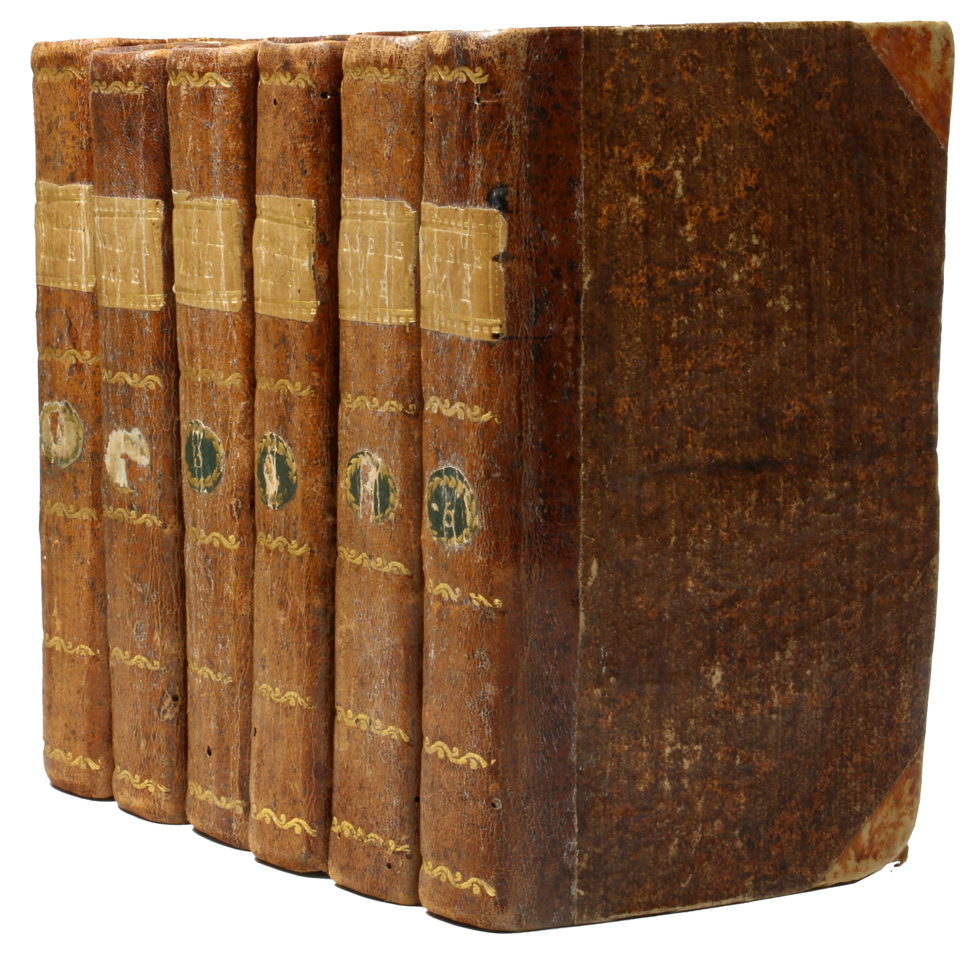 Venice, Giuseppe Orlandelli, per la dita del fu Francesco di Nicolò Pezzana, 1791. 6 volumes. 12mo. With a small vignette built up from typographical ornaments on the title page of each volume and with some headpieces built up from typographical ornaments. Contemporary half calf. 336; 333, [1]; 381, [1]; 360; 392; 374 pp.