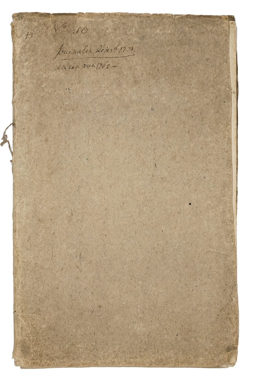 A contemporary manuscript note on the front wrapper reads "Journael zedert 1771 | en een van 1762", and Bentincks American journal of 1756-1762 was formerly loosely inserted with the present journals of 1771 and 1774.