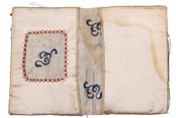 Rare specimen of 17th-century English silk bookbinding