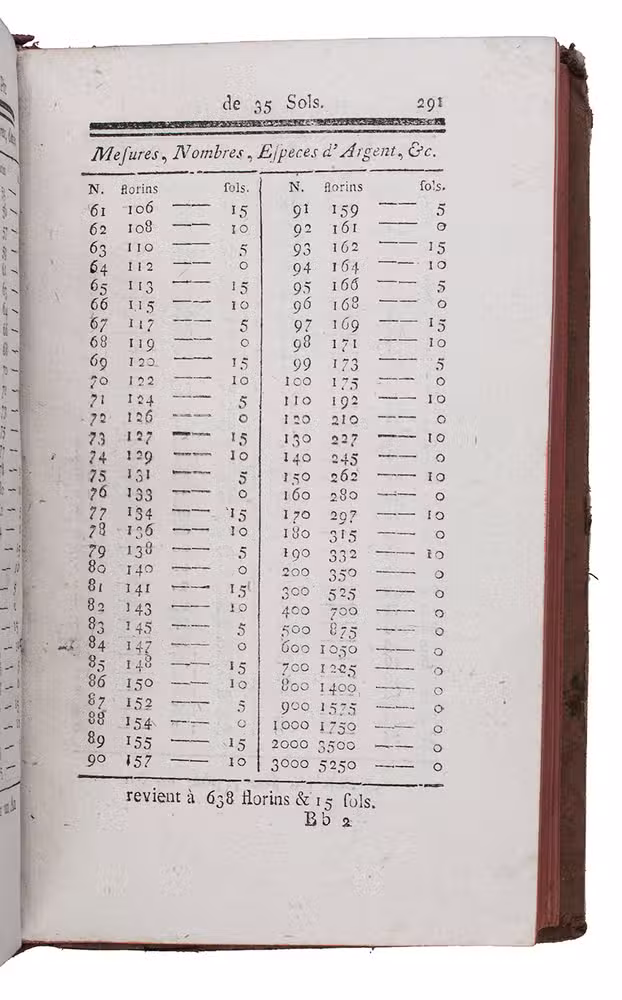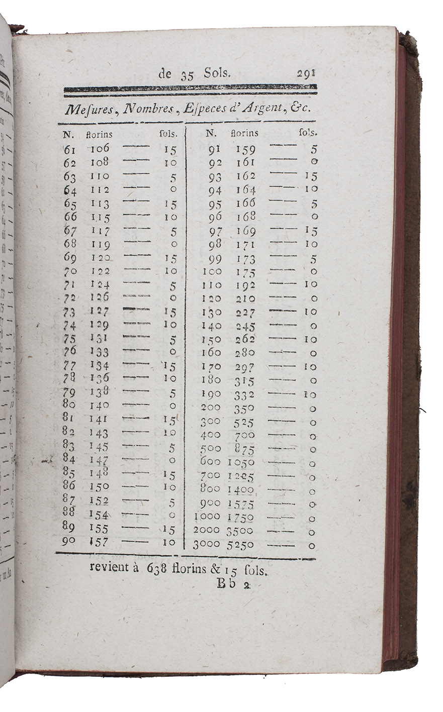 Corrected and augmented "eleventh" edition of a handbook for merchants and traders in the Southern Netherlands, here in a French edition, but also available in Dutch (Den Nederlandschen negociant ...). All editions appear to be very rare. It consists of numerous tables giving information for the conversion of monetary units, weights and measures.