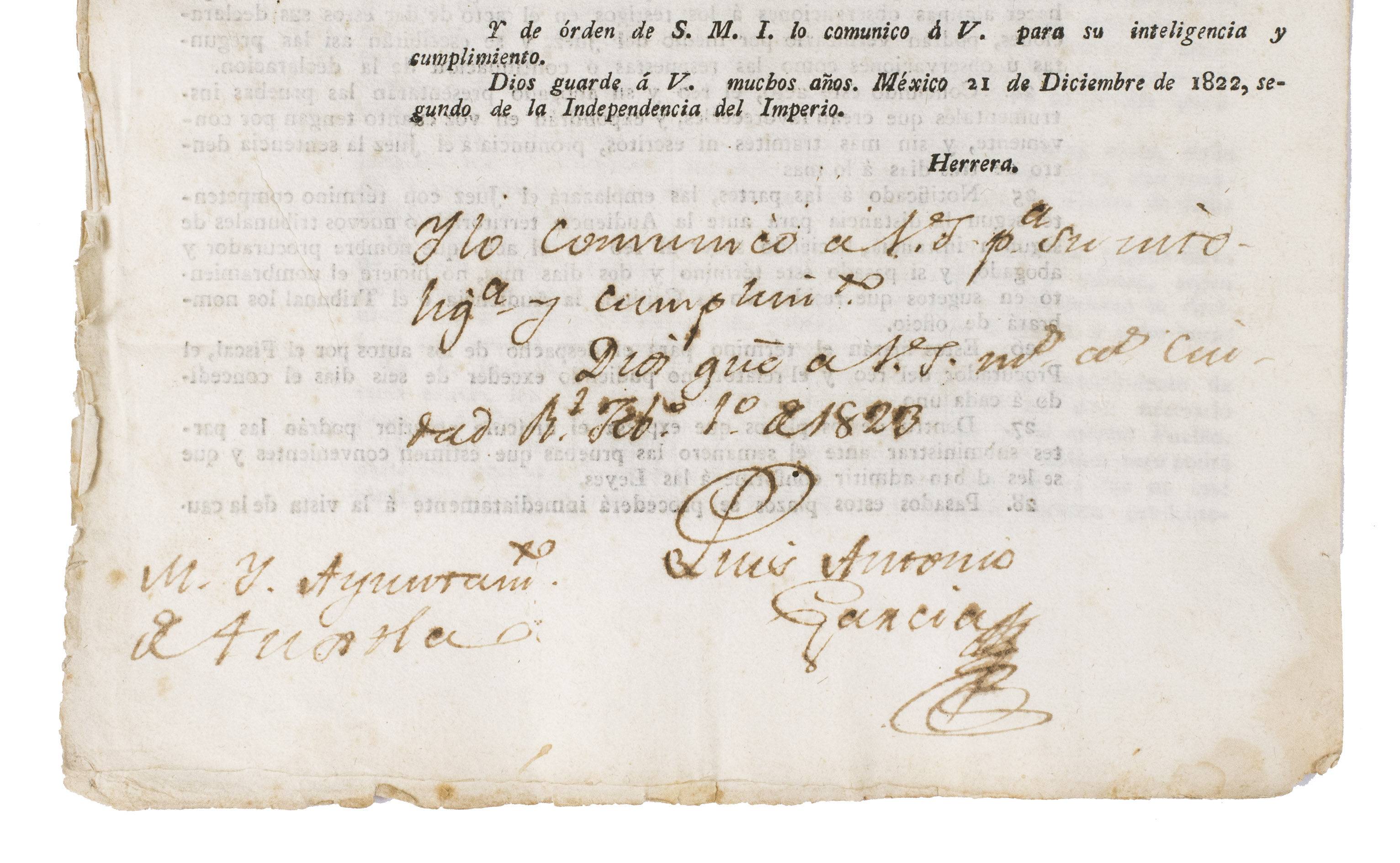 Mexico, 21 December 1822. Ca. 31.5 x 21.5 cm. [2] ll.