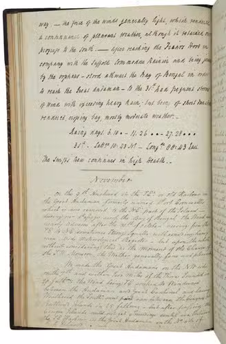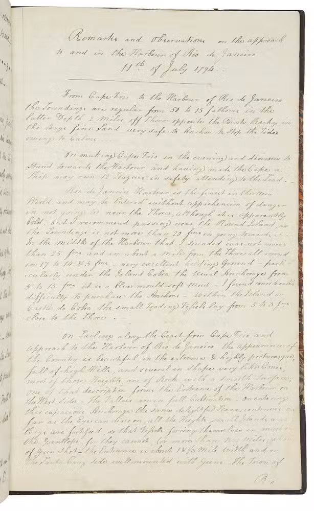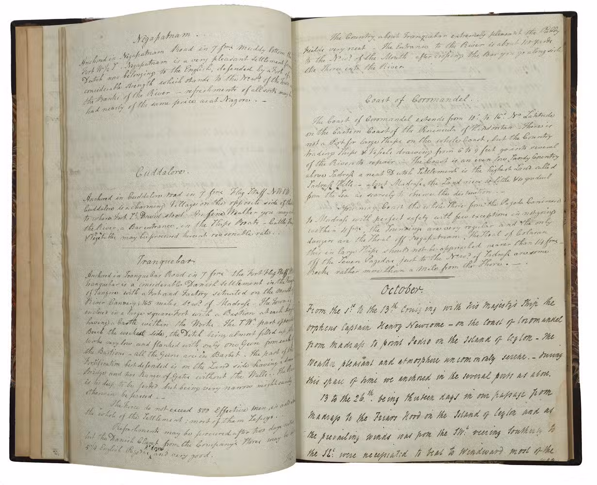 A detailed description of the voyage of the East India company vessel, the Swift, from 1794-1795, featuring visits to both Saudi Arabia and Yemen. Twelve pages of observations are dedicated to Jeddah alone, witnessed at the height of the influx of pilgrims during the Hajj, followed by a description of Mocha (also Mokha), in Yemen. Other ports visited include those of Brazil, South Africa, India, the Nicobar Islands, Malaysia, and Sri Lanka.