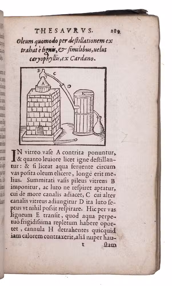 Binding soiled and a few stains and smudges throughout; a good copy. USTC 151668; Wellcome I, 2778; not in Durling; cf. Forbes, A short history of the art of distillation, pp. 120-126.