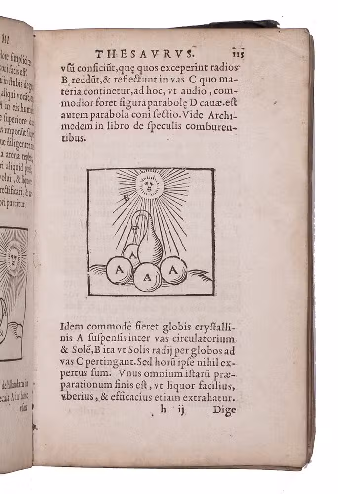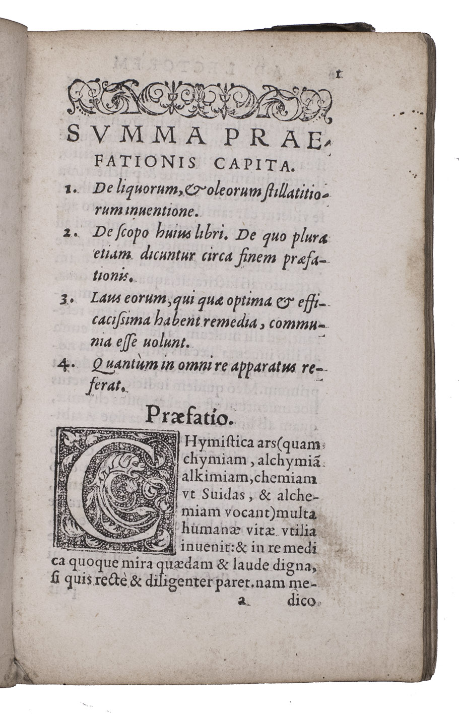 "The work begins with a short historical introduction which says that the Greeks and Romans could not yet distil and claims that the art was invented by the Barbarians, Carthaginians and Arabs shortly after the famous Hellenistic physicians. He gives a few short notes on Arabian scientists like Mesue, Avicenna and Bulcasis, describing their methods of making rose-oil" (Forbes).