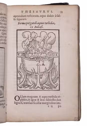 Third edition in the original Latin, of the first part of Conrad Gesner's very popular book of secrets. It primarily concerns distillation and its use in making medicines, with most of the woodcuts illustrating furnaces, glassware and other equipment for distilling. It discusses the various kinds of distillation, the equipment and techniques, aqueous solutions, the making of medicines from a wide variety of plants, animals and minerals (including metal salts), extracting oils, etc.