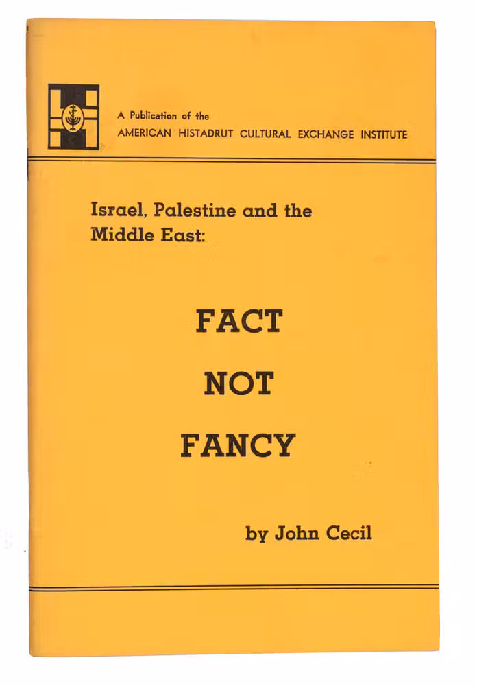 (4) CECIL, John. Israel, Palestine and the Middle East: fact not fancy. New York, 1960s.
