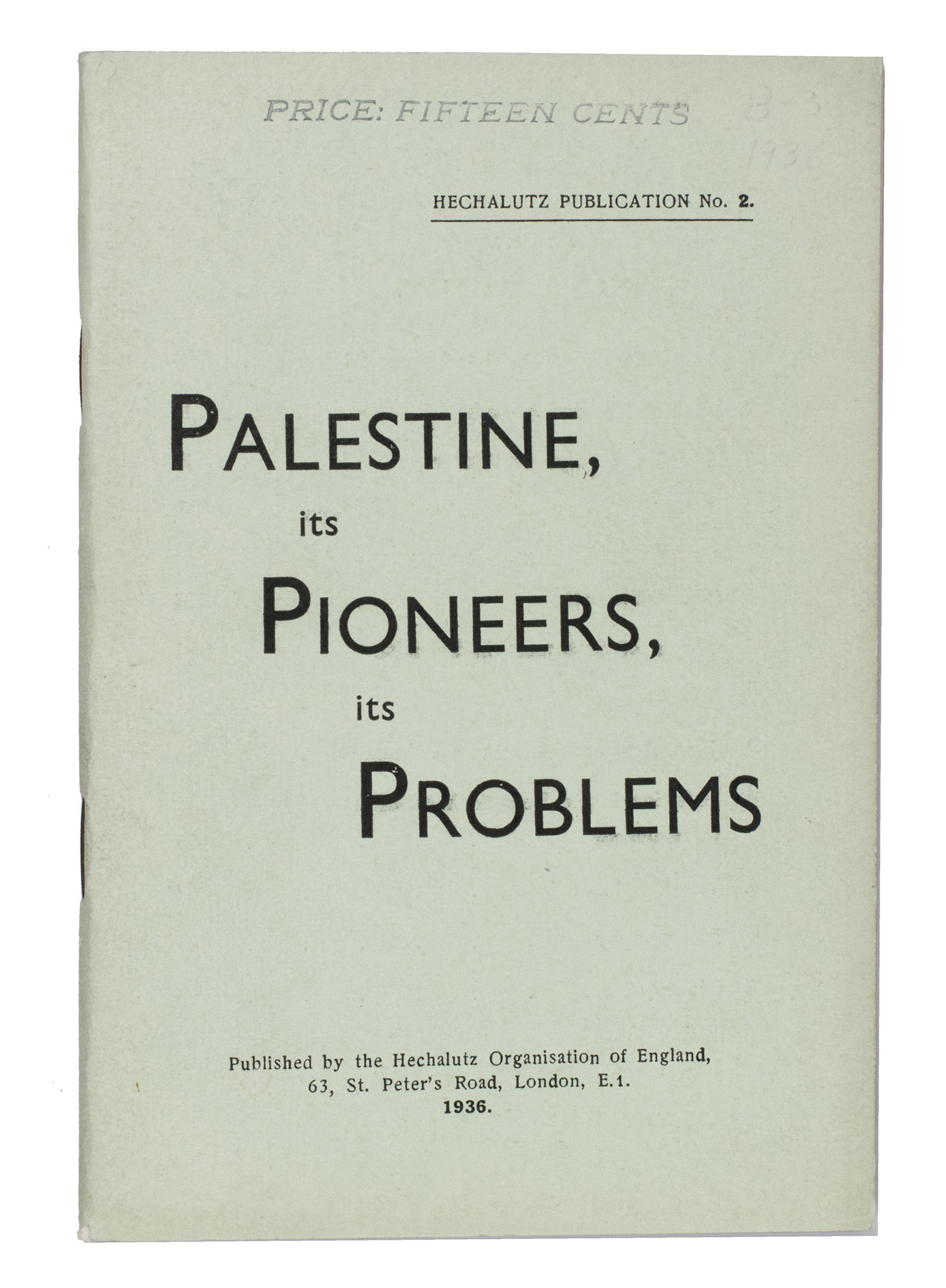 (1) HECHALUTZ ORGANISATION OF ENGLAND. Palestine, its pioneers, its problems. London, 1936.