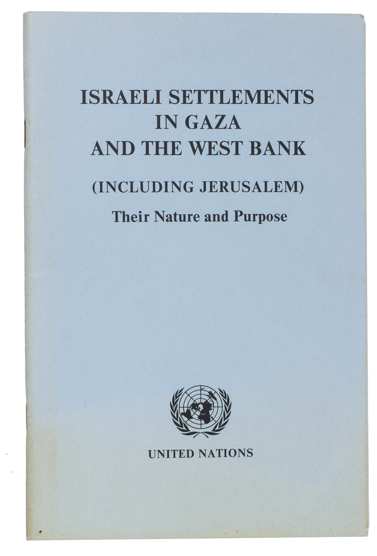 (5) UNITED NATIONS. Israeli settlements in Gaza and the West Bank (including Jerusalem). Their nature and purpose. New York, 1982.