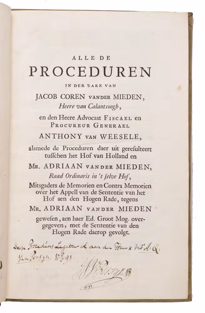 Alle de proceduren in der zake van Jacob Coren vander Mieden, heere van Calantsoogh, en den heere advocaat fiscael en procureur generael Anthony van Weesele, alsmede de proceduren daer uit geresulteert.