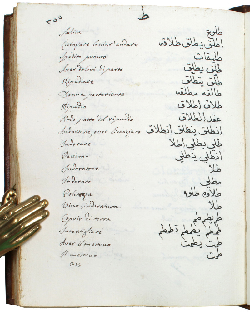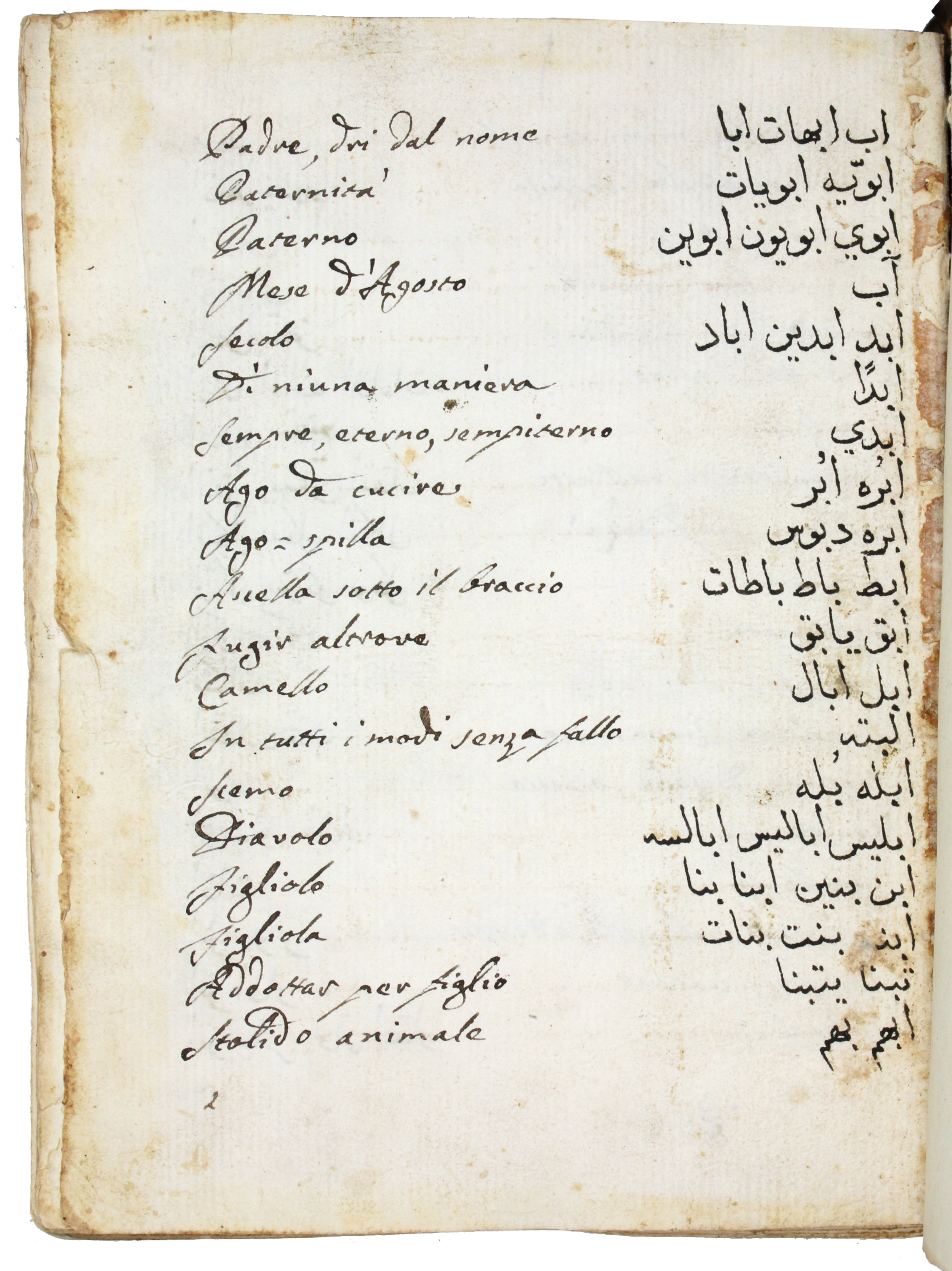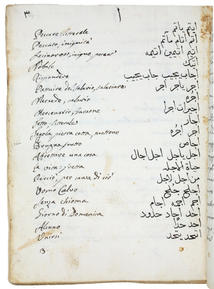 [Vocabularium Italico-Arabicum]. Arabic-Italian dictionary.