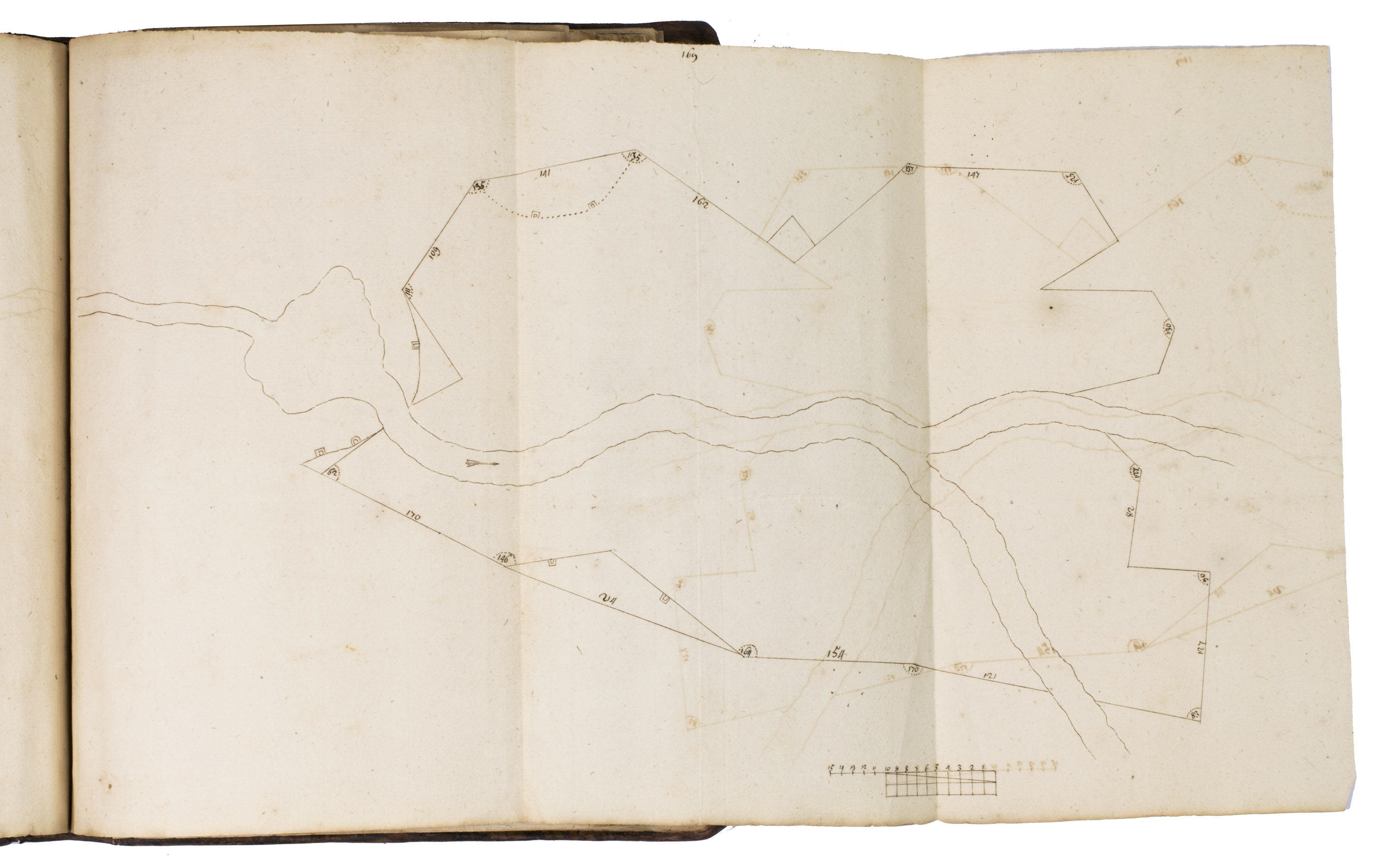 Much of the paper is slightly browned, and the ink has left a shadow on the back of the pages or the facing pages. The corner of one leaf was restored before the manuscript was written. One leaf (a cancel, blank except for a page number) is detached, and some of the slips extending the margins have come partly loose. A long tear along the fold of 1 folding leaf professionally restored. Some worm holes in the gutter margin of about 30 leaves, not affecting the text or drawings. Most leaves are in good condition. Binding professionally restored with only some minor worn to the boards. An interesting illustrated manuscript fortifications manual, in French but probably from northern Germany.