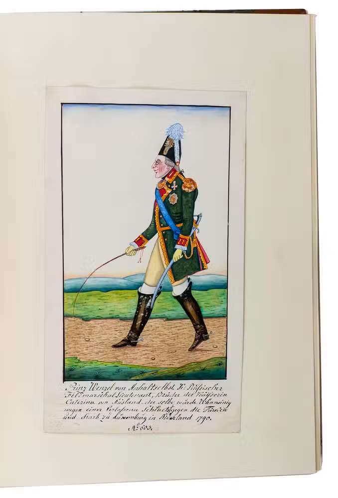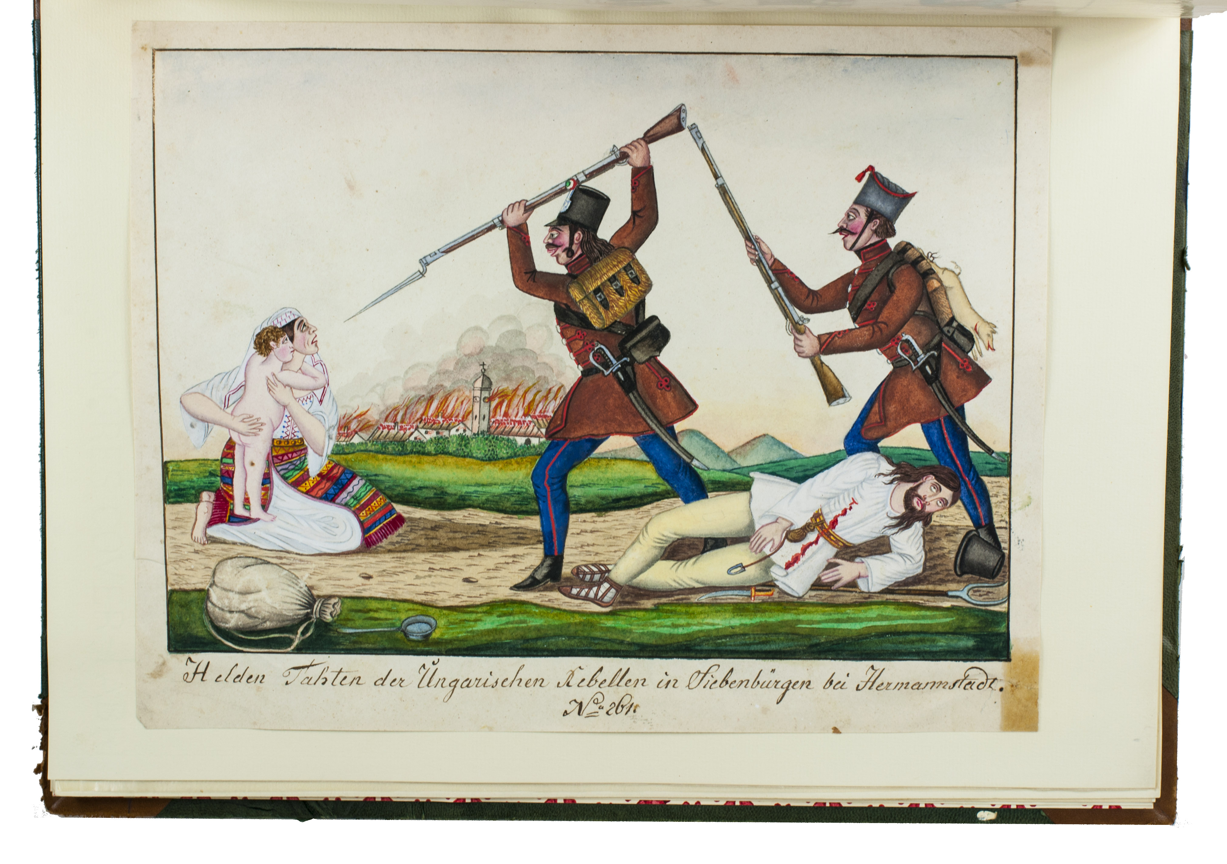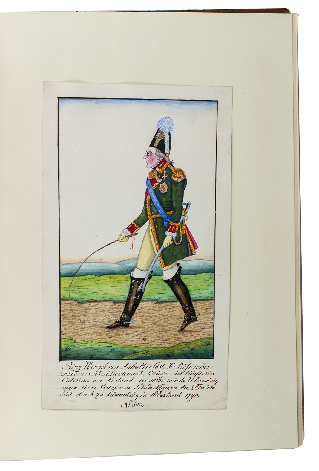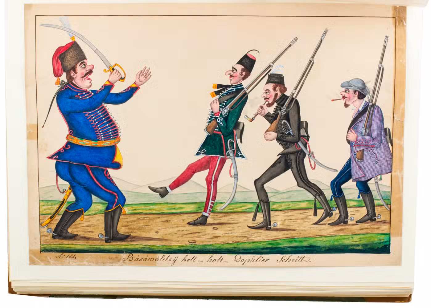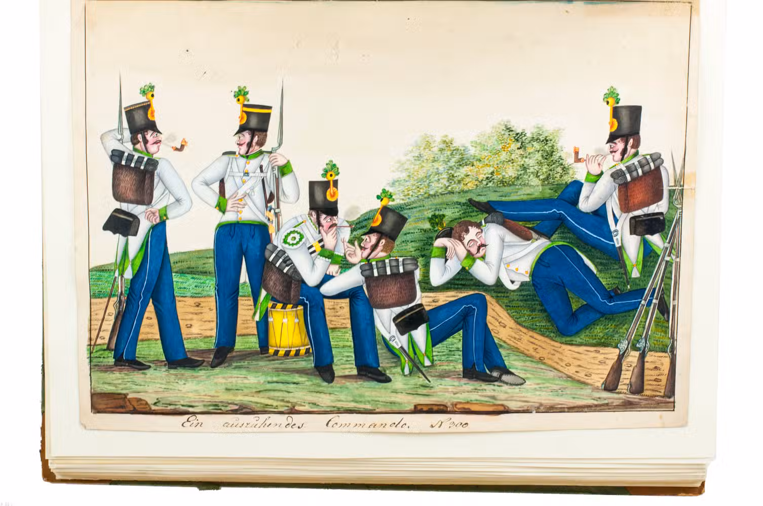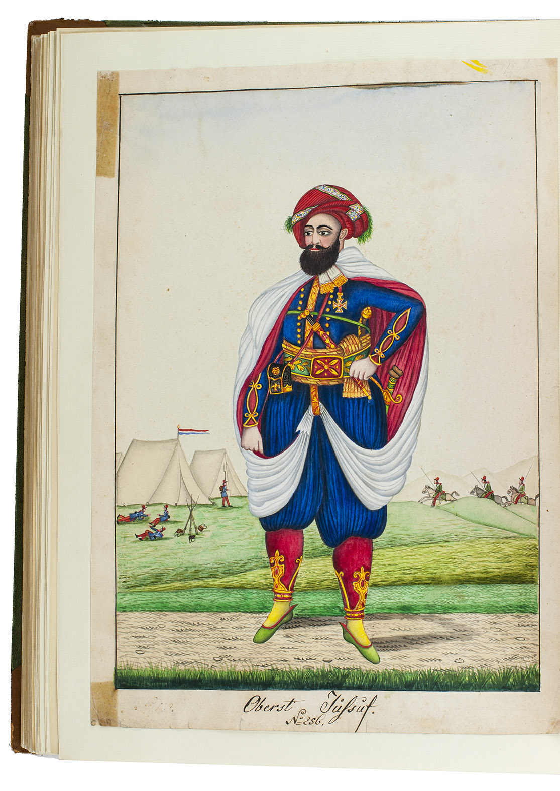 An extraordinary set of original watercolour drawings, apparently unpublished, celebrating the creation of the Austro-Hungarian Empire through the military events that led up to it and the uniforms of the various nations and regiments involved. Except for one drawing concerning 1631, the events depicted are dated from 1757 to 1852. Officers and others in uniform from every corner of the Empire are shown: Prussians, Hungarians, Austrians, Poles, Czechs, Croats, Dalmatians, Transylvanians, Serbians, Bosnians and many more, with a few examples of local militias and of foreign army regiments from France, the Ottoman Empire, Russia and the British Isles (including kilted Scottish Grenadiers at Waterloo). A few appear in Islamic dress, including turbans. Some show portraits of leading figures, including Frederick the Great (1712-1786), King of Prussia and Mohammed Said Pasja (1822-1863) wali (governor) of Egypt. The uniforms are depicted in great detail, with vivid and bright colours, and some show the changes in uniforms at two or three different dates in a short span of years. The present set of 84 was no doubt part of a collection of at least 536. They may have been prepared for a publication that remained unrealised.