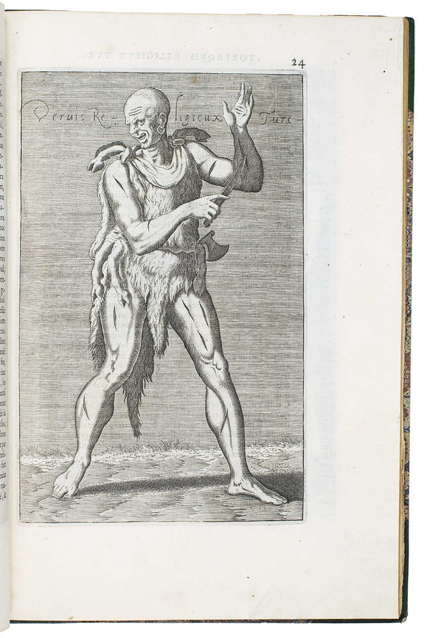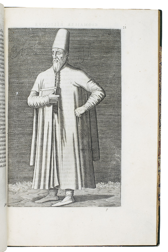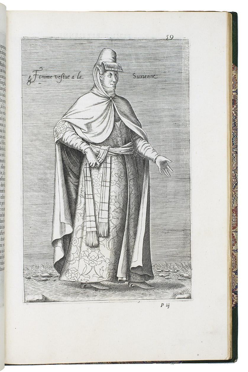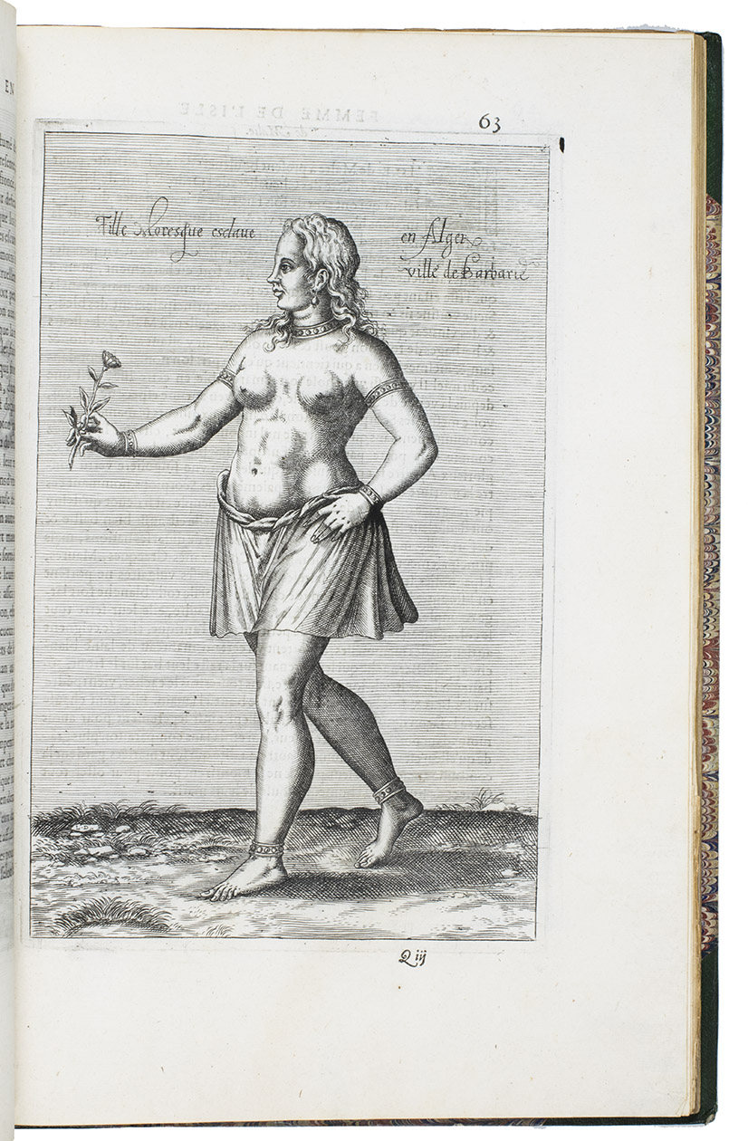 [Paris, widow of Abel L'Angelier, 1620]. 2 parts in 1 volume. Folio. With 79 engraved plates, including 62 costume plates (ca. 27.5 x 17.5 cm) after Nicolas Nicolay. With an additional loosely inserted engraving of a "Marchant Juif". All the plates have explanatory texts on the versos of the preceding plates. 19th-century green half morocco. "64" [=65] ll., 65-114, [3], [1 blank] pp.