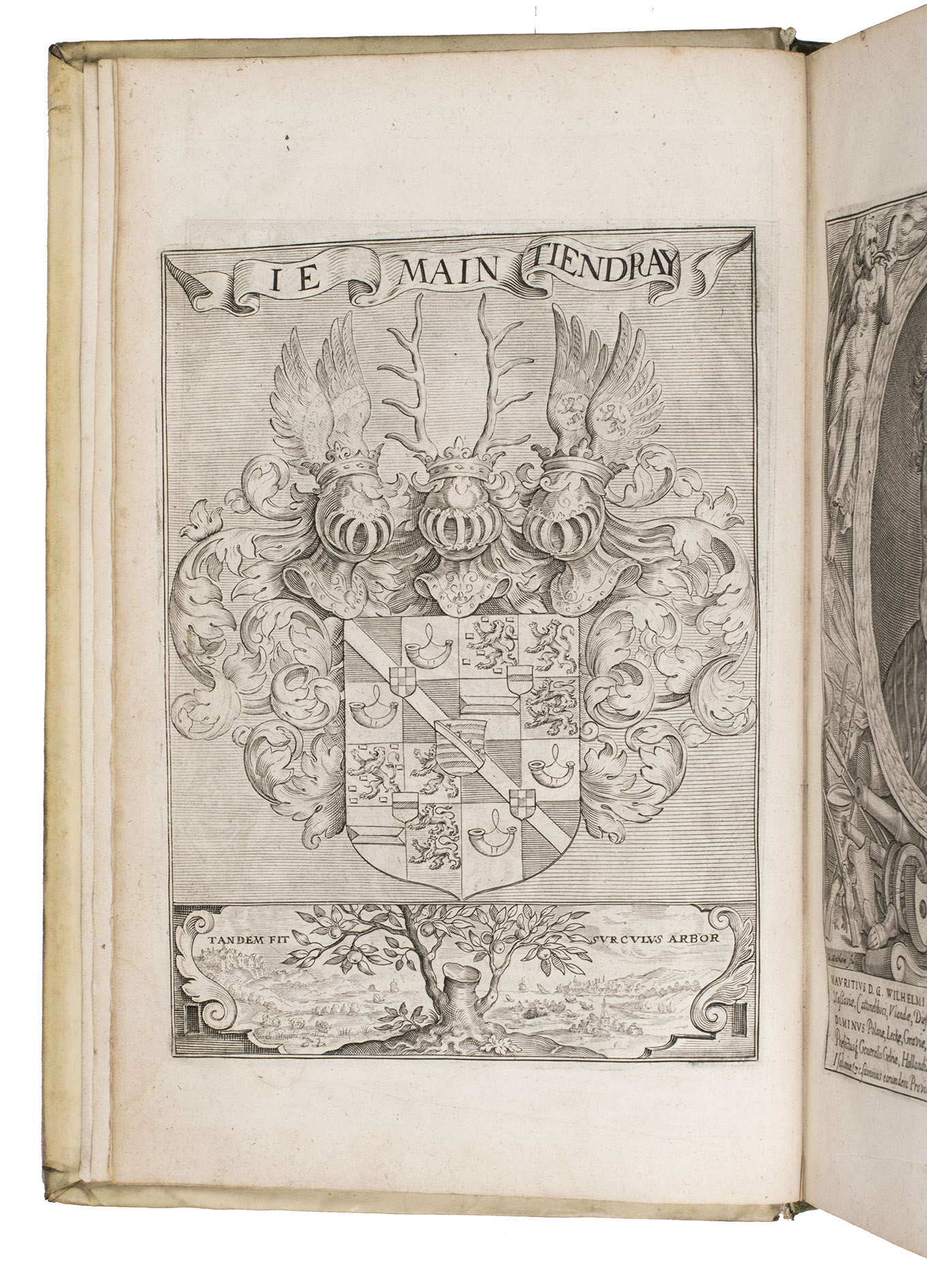 Famous and lavishly illustrated work on the genealogy and victories of Stadholder Prince Maurice of Orange (1567-1625), bound by the famous Amsterdam bookbinder Albertus Magnus. The present French edition was published by Johannes Janssonius in Amsterdam, but includes the title page from an otherwise unrecorded 1620 issue with the imprint of Jan Orlers, which is very rare. Most copies of the present edition have the Janssonius title page.