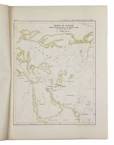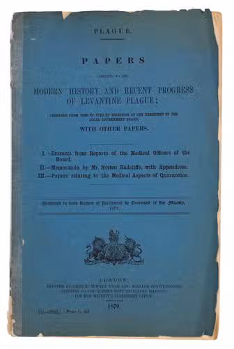 Compilation of observational governmental reports on various outbreaks of the bubonic plague in the Middle East, Persia and Egypt between 1853 and 1877. As stated in the introduction, this publication was compiled to study the epidemic in detail, in the hope that such learning might benefit Great Britain in the event of an outbreak of the plague in its own territories. The information in these reports proved to be of value during the intense study of the plague in the 1890s, which led to the identification of the diseases origin in 1894. The compilation comprises three parts: the first contains extracts from reports of the medical officers of the local government board, the second is a memorandum by Mr. Netten Radcliffe and the last contains a few papers considering the medical aspects of quarantine.