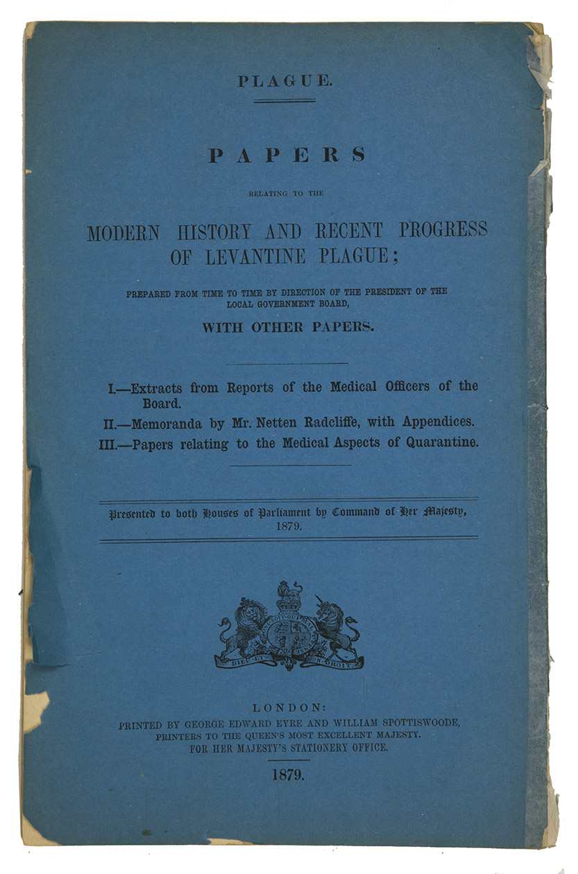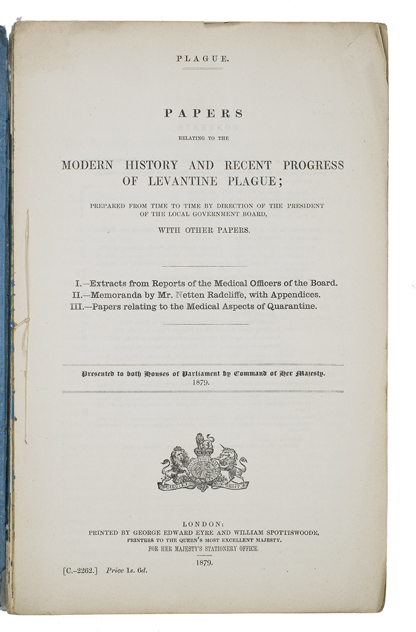 Papers relating to the modern history and recent progress of Levantine plague; prepared from time to time by direction of the president to the local government board, with other papers. Presented to both Houses of Parliament by command of Her Majesty, 1879. C.-2262.