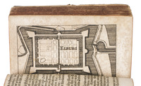 The vellum is rubbed, affecting the clarity of the supralibros, the spine has been restored, lacking 4 of the 6 closing ties. The work is somewhat browned and foxed, a small hole in leaf I7 (pp. 205-206) with some loss of text. Otherwise in good condition. Georgi, I, 136; USTC 2550794 (13 copies); VD17, 39:107693D.