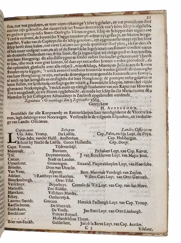 Since Tiele attributes this anonymous edition to Venckel, it seems likely to be the first edition, which Venckel first published anonymously. In any case, the present edition is rare. We find only two records of it at auction, in 2005 and 2015, the other copies are all held institutionally. A highly interesting pamphlet on one of the most important and fascinating 17th-century sea battles in Dutch naval history and in the history of the Dutch VOC.