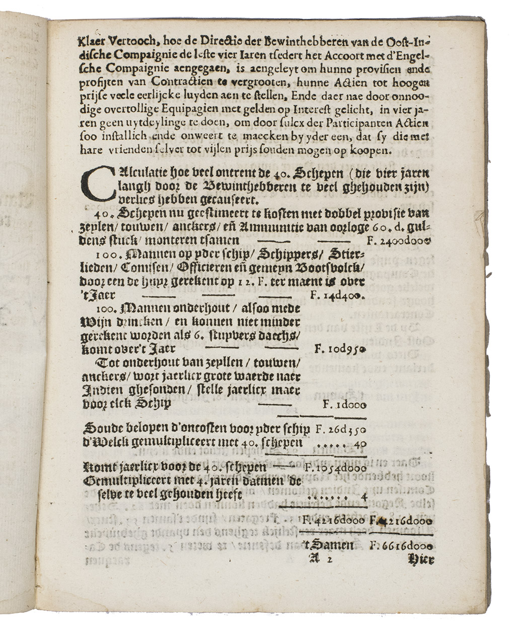 Klaer vertooch van de schadelijcke directie der bewinthebberen der Vereenichde Oost-Indische Compaignie in vier jaren, nae dat het accoort met d'Engelsche Compaignie gemaeckt is gheweest.