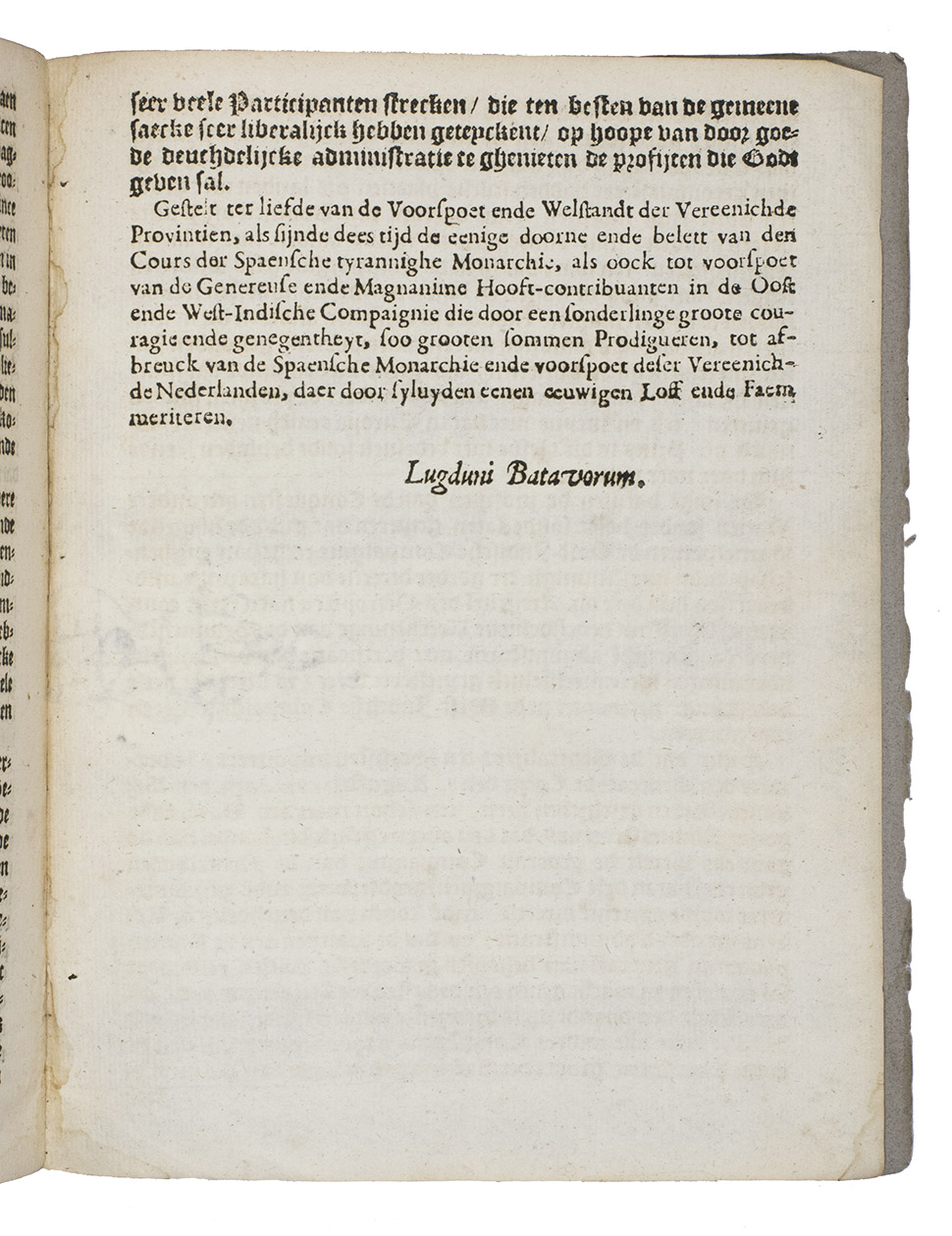 Good condition, small damage of removed label on paper wrapper binding. Asher 83; Knuttel 3537; Landwehr, VOC, 903; E. Laspeyres, Geschichte der volkswirthschaftlichen Anschauungen der Niederländer und ihrer Literatur zur Zeit der Republic, p. 296, No. 56; STCN 860871568; USTC 1033594.