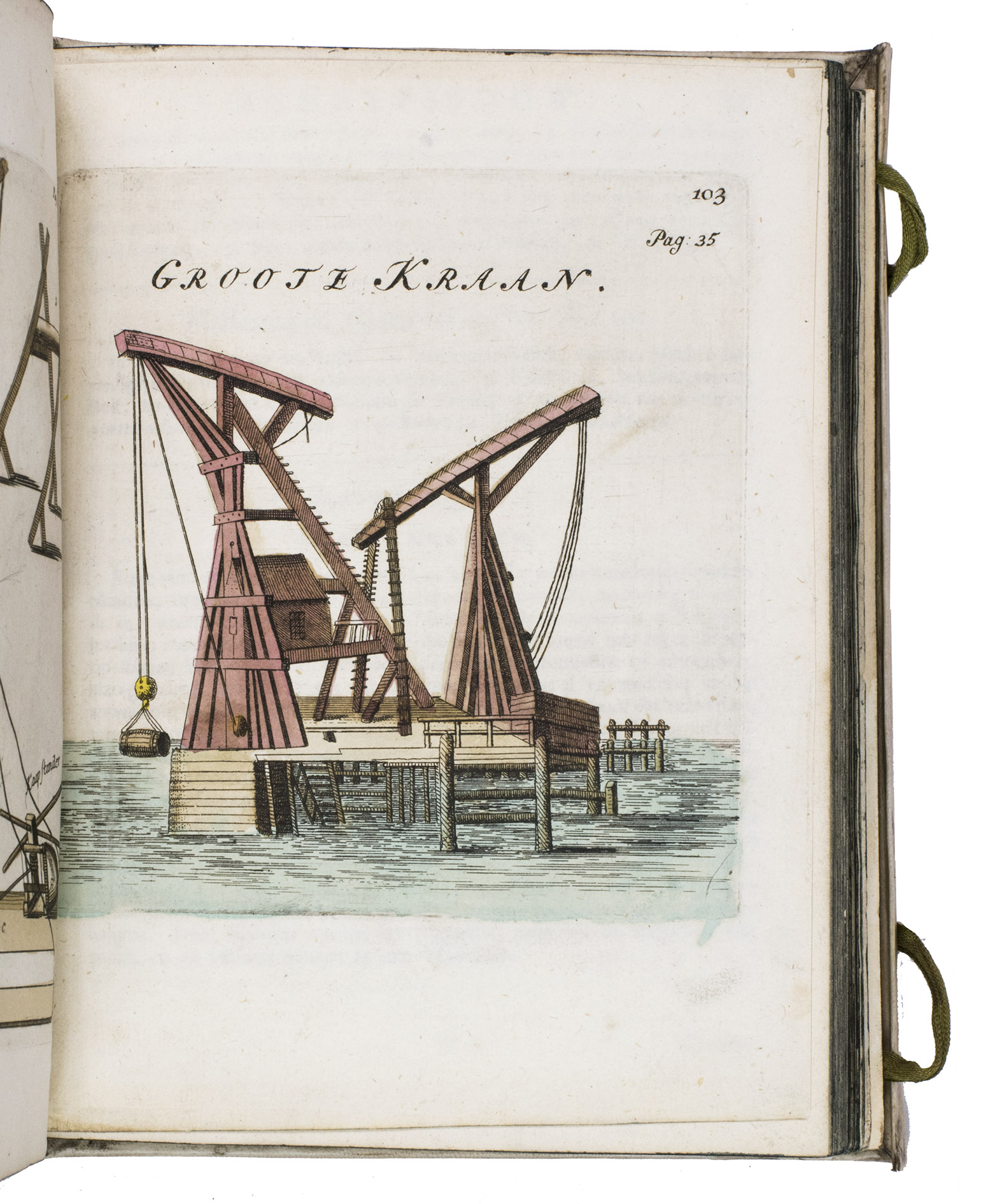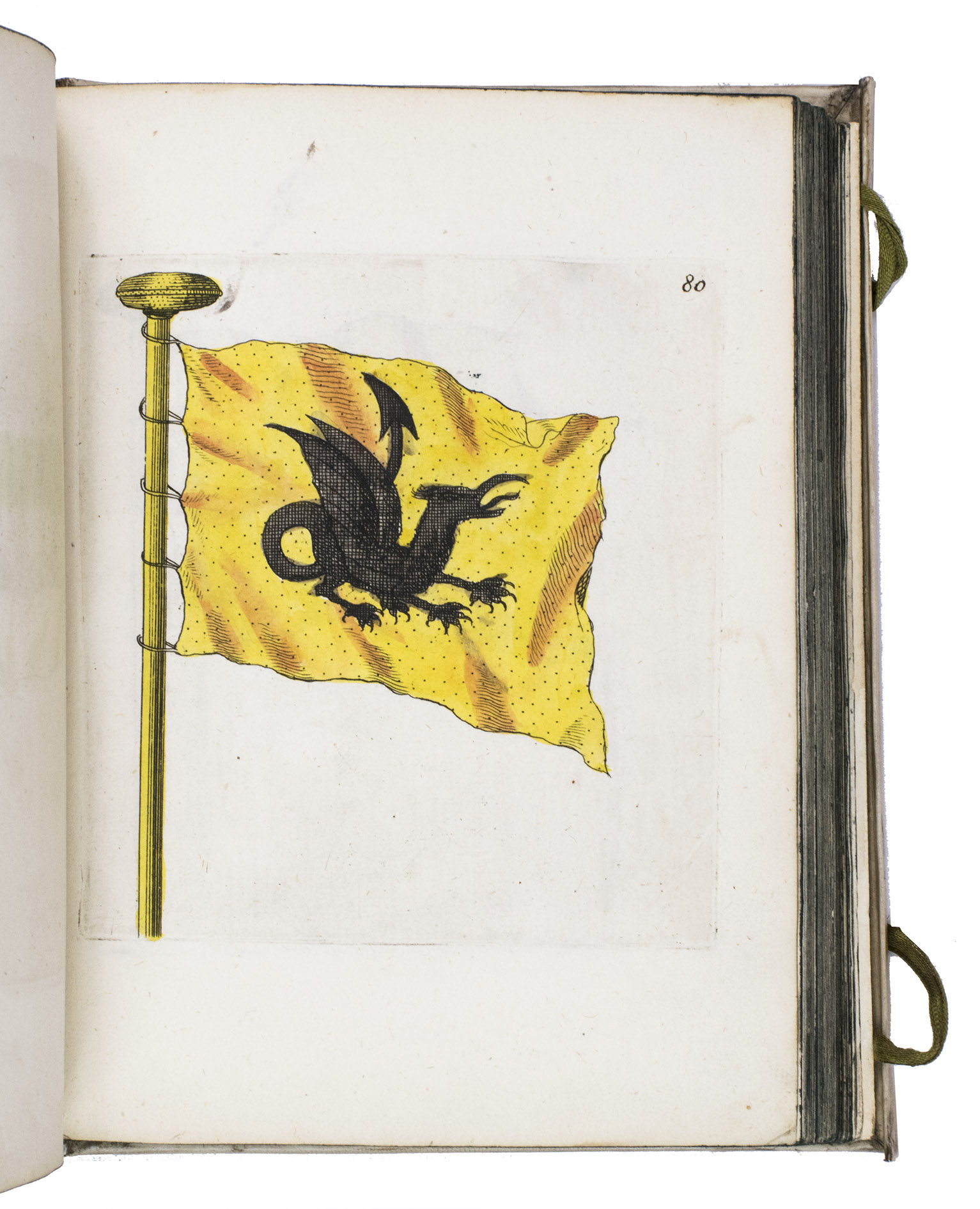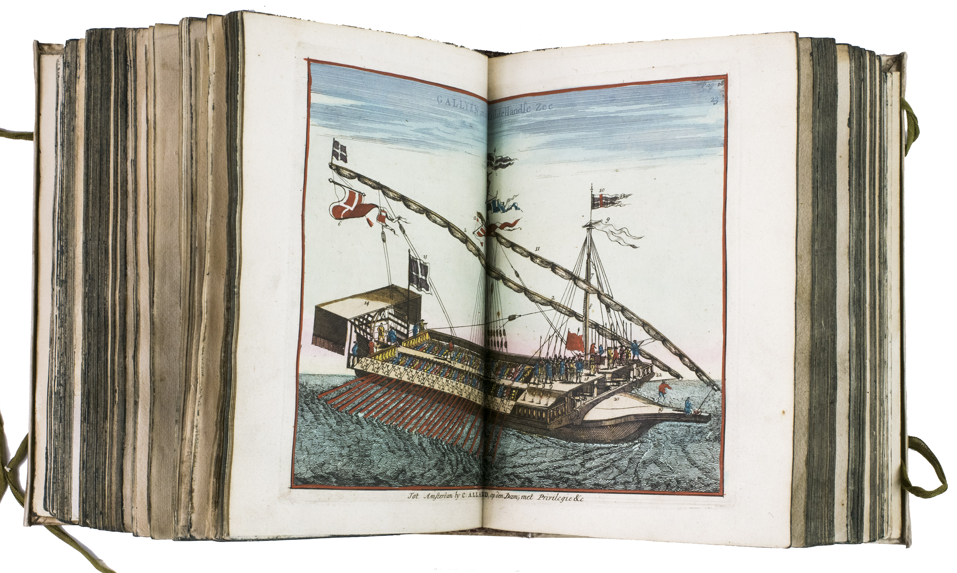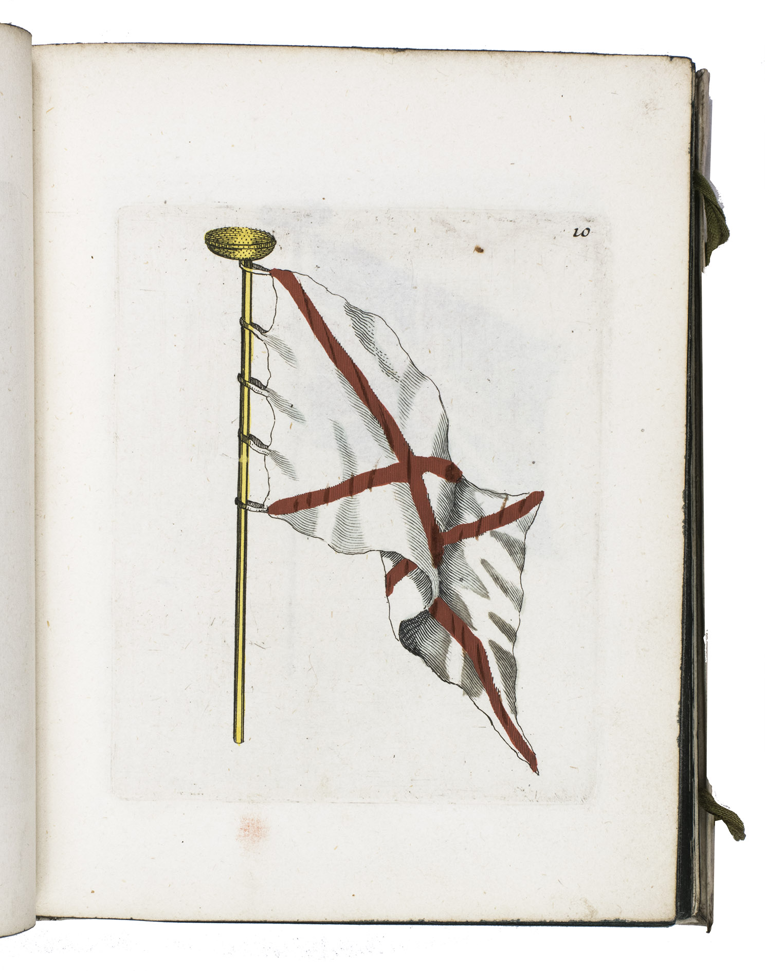 Highly important work on shipbuilding showing all facets of this trade, with 208 beautifully contemporary hand coloured plates. It is also one of the first extensive flag books. The treatise was one of the most used sea manuals at the time, but today is very rare, especially in such fine contemporary colouring. Although there are very few copies of it left as is (we have only been able to trace three other copies in sales records and five in libraries), most of them lack the third volume. The present copy, however, is complete.