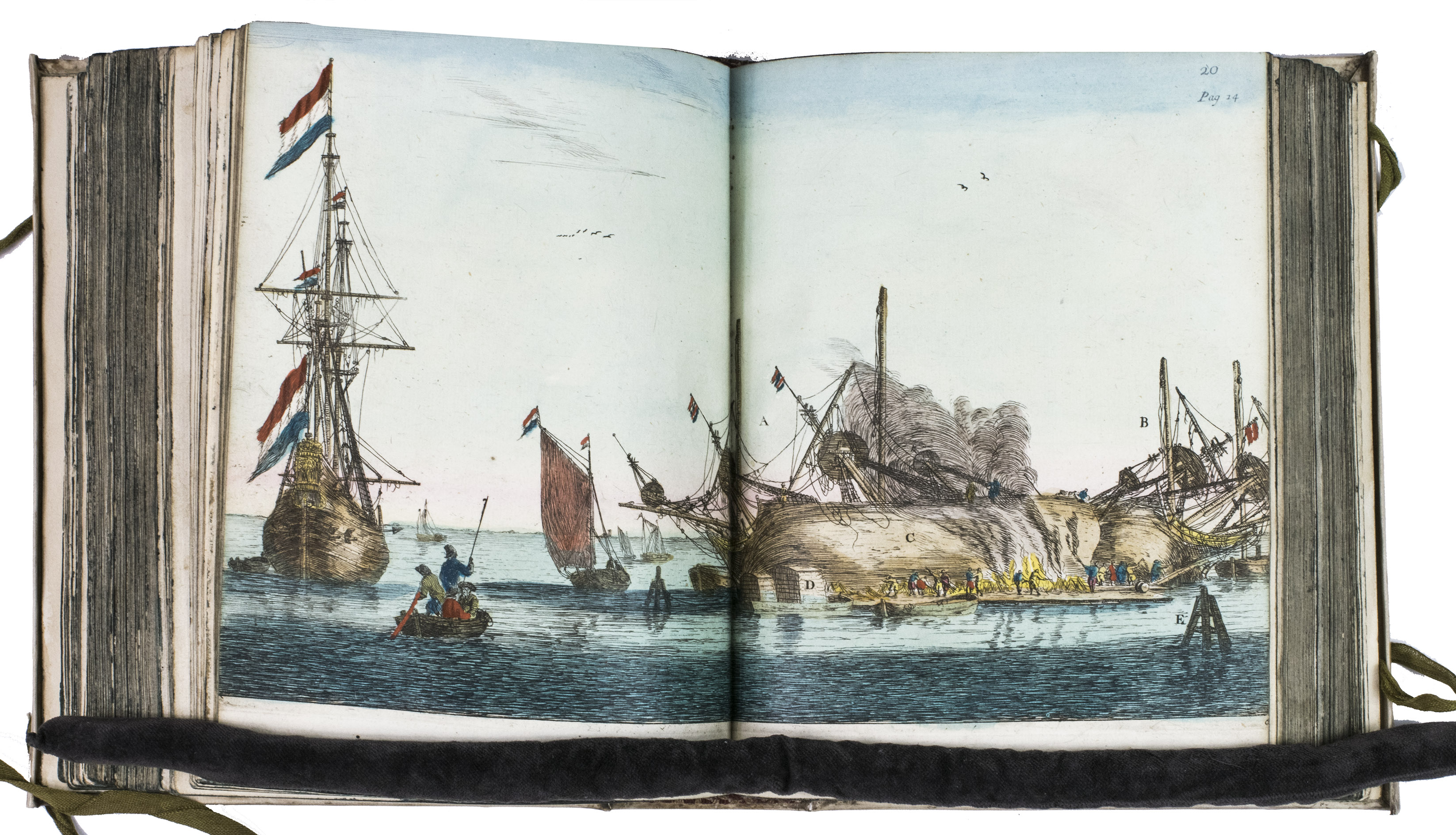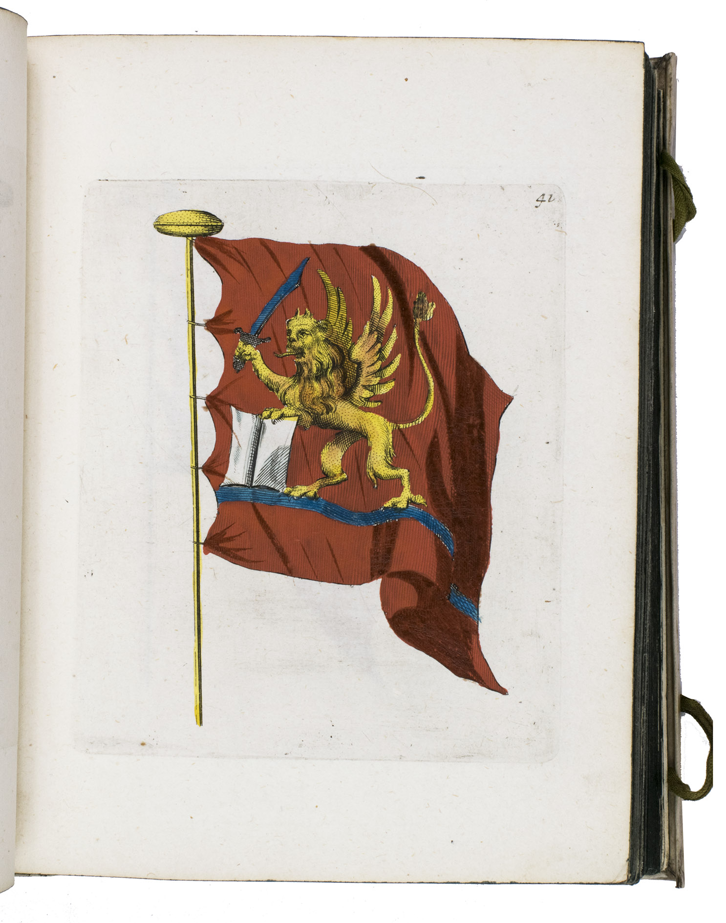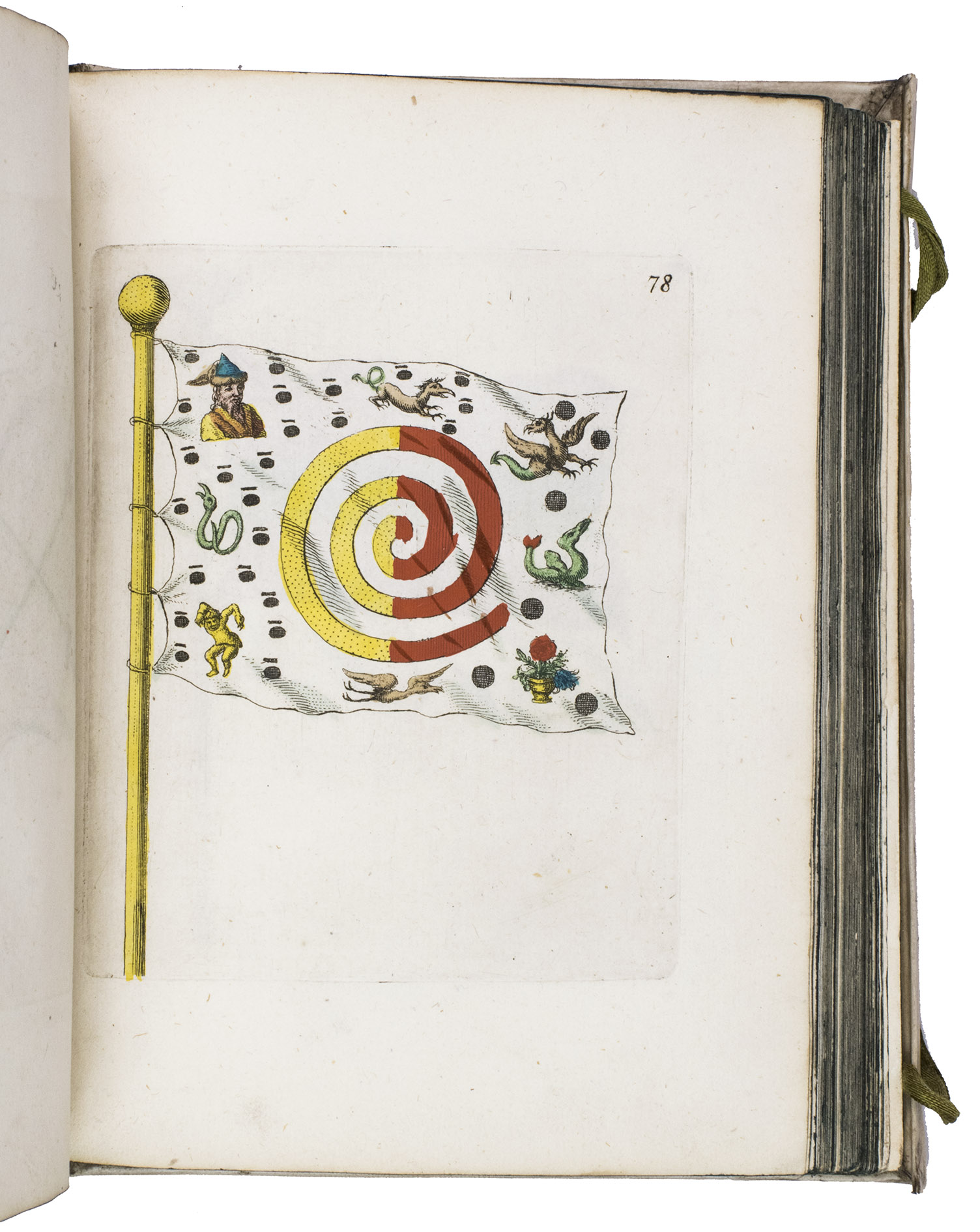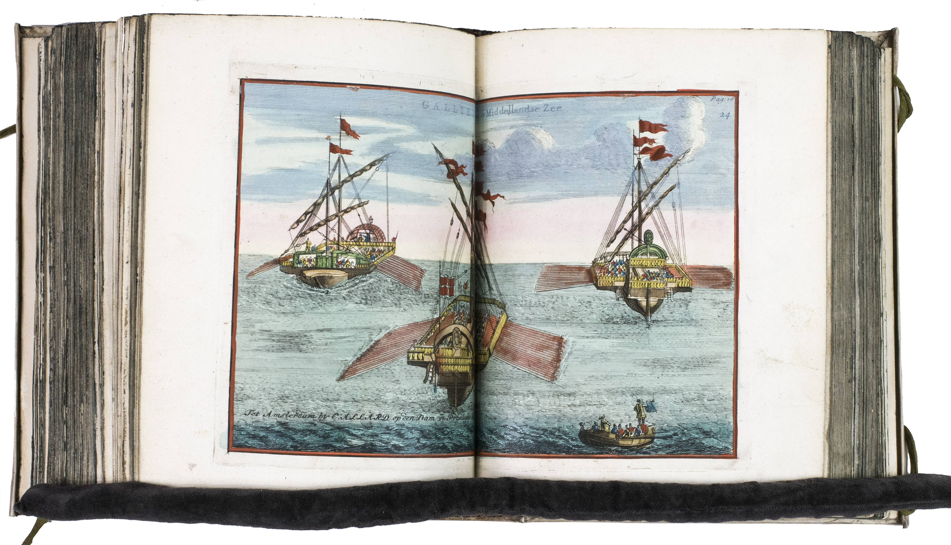 Highly important work on shipbuilding showing all facets of this trade, with 208 beautifully contemporary hand coloured plates. It is also one of the first extensive flag books. The treatise was one of the most used sea manuals at the time, but today is very rare, especially in such fine contemporary colouring. Although there are very few copies of it left as is (we have only been able to trace three other copies in sales records and five in libraries), most of them lack the third volume. The present copy, however, is complete.