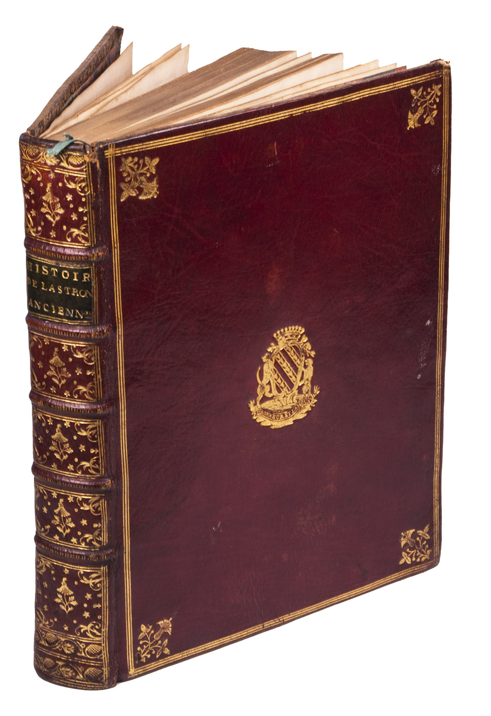 This copy was originally owned by and bound for Bailly's most important contemporary biographer, his friend Simon-Pierre Mérard de Saint-Just, who published Eloge historique de Jean-Sylvain Bailly (1794). His arms appear on the binding. In very good condition, with only a few minor spots. The binding also very good, only slightly worn around the corners and hinges. An important work on ancient astronomy, beautifully bound for the author's biographer. DSB I, pp. 400-402; Houzeau & Lancaster 22; Smith, "Jean-Sylvain Bailly; astronomer, mystic, revolutionary", in: Transactions of the American Philosophical Society, n.s. 44 (1954), pp. 427-538.