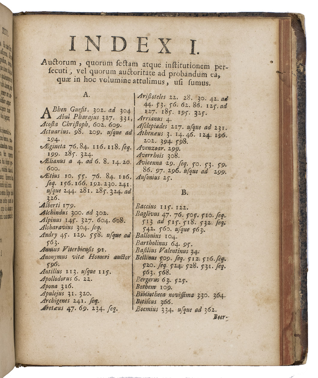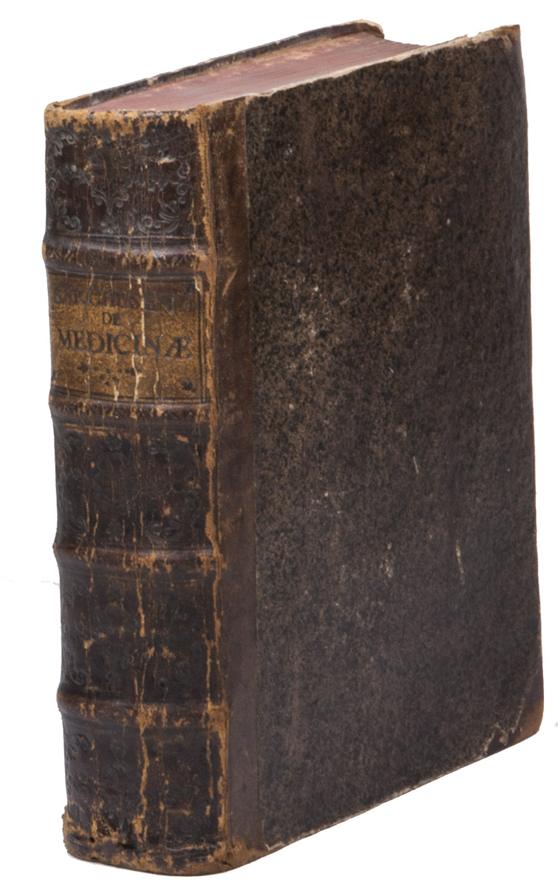 With the spine showing signs of wear, the edges and corners of the boards are slightly rubbed, the gold-tooling on the spine has faded, somewhat browned and foxed throughout, some minor worm holes in the blank outer margin of the last half of the work, not affecting the text. Otherwise in good condition. Blake, p. 99; DSB I, p. 450-1; Ferguson, Bibliotheca Chemica I, p. 72 "an interesting collection of essays"; Neu, Chemical, Medical, and Pharmaceutical Books Printed before 1800 in the collections of the University of Wisconsin Libraries, 230; STCN 203248589 (7 copies); not in Bibl. Med. Neerl.; Cole.