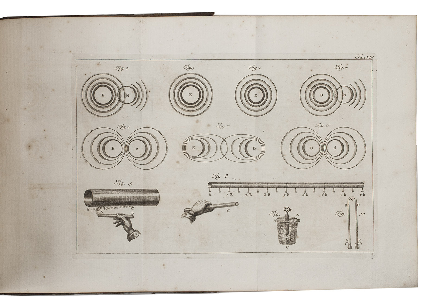 Bookblock cracked, with some leaves a bit loose, a few leaves slightly browned and some occasional spots. Binding heavily rubbed, with much of the gold lost in the tooling on the spine. Good copy of two important works on electricity. Ad 1: DSB I, p. 548; ICCU TO0E 000864; Wheeler Gift 435bis; ad 2: DSB I, pp. 547-548; ICCU TO0E 000867; Wheeler Gift 424.