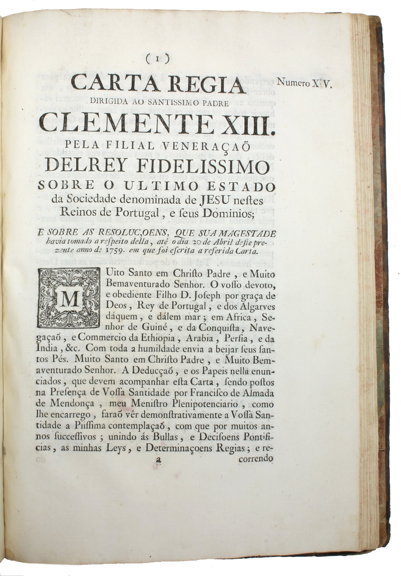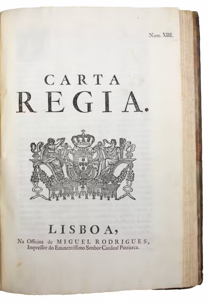 [Lisbon], Secretaria de estado, [1759]. Folio (21.3 x 30.5 cm). With al large woodcut vignette showing the Portuguese coat of arms on the title page (and on one of the divisional title pages), and with woodcut decorated initials. Contemporary calf, gold-tooled spine, marbled endpapers. [2], 4, [4], 12, 4, [2], 34, 8, 7, [1 blank], 8, 6, 7, [1 blank], 12, [16], 27, [25], 32, 48, 6, 6 pp.