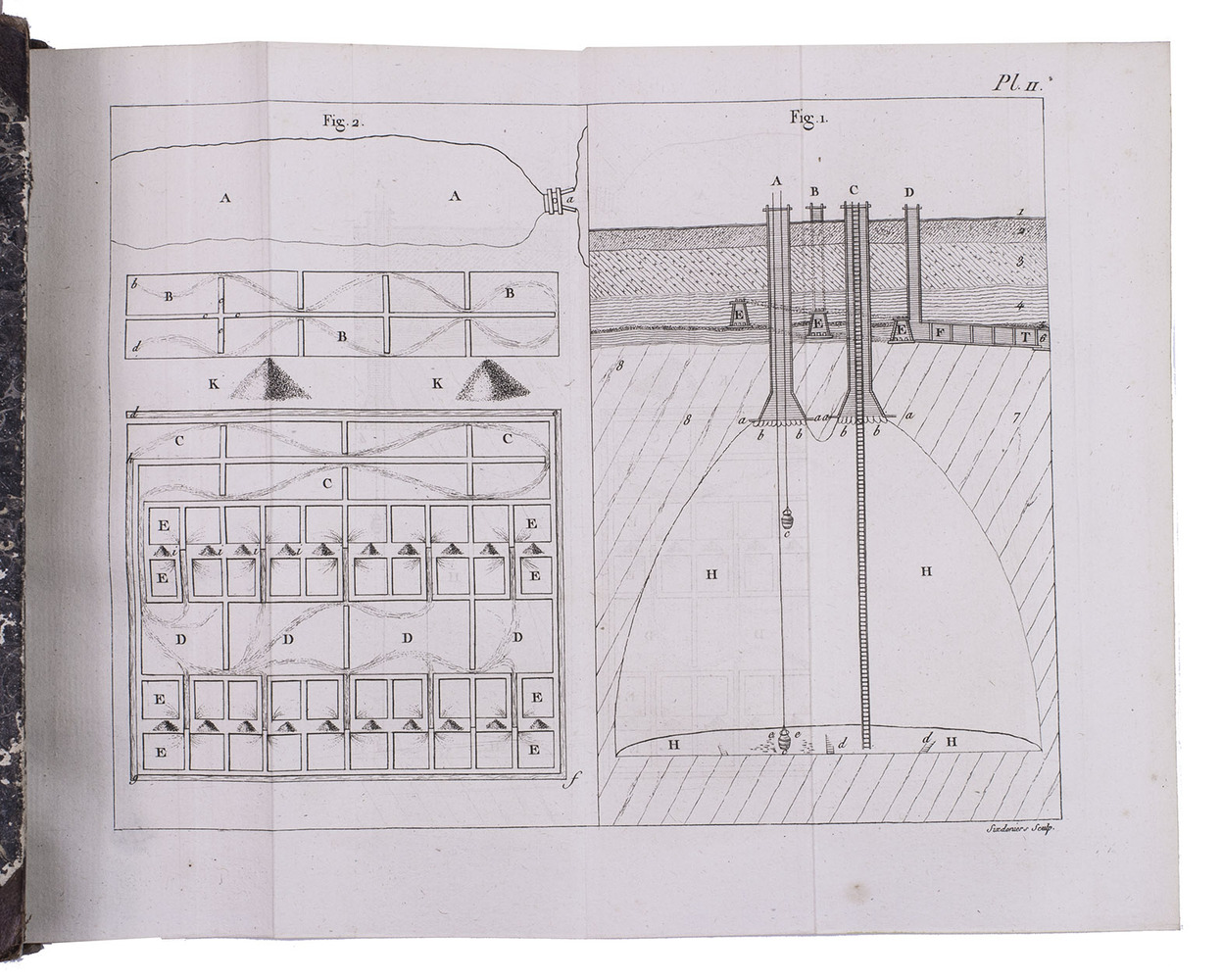 Paris, Crapelet; Deterville, 1807. 2 volumes. 8vo. With 16 folding engraved plates. Contemporary half calf, gold-tooled spines. XII, 564; [4], 443, [1] pp.