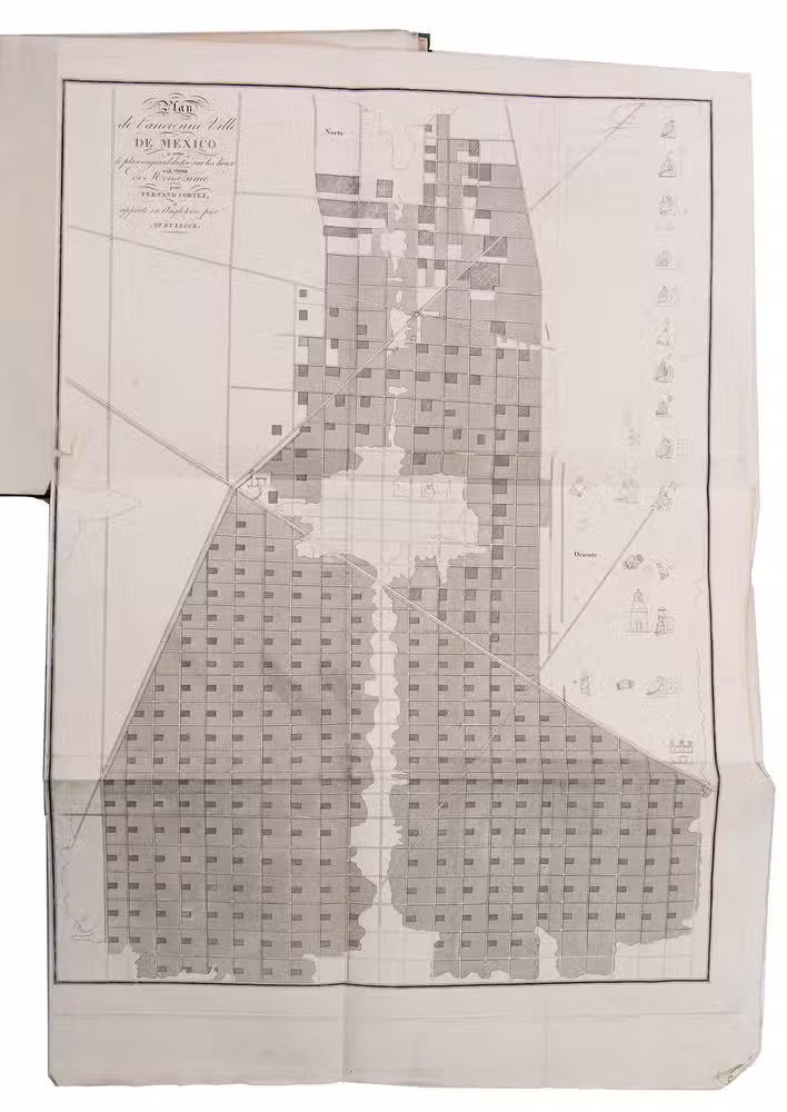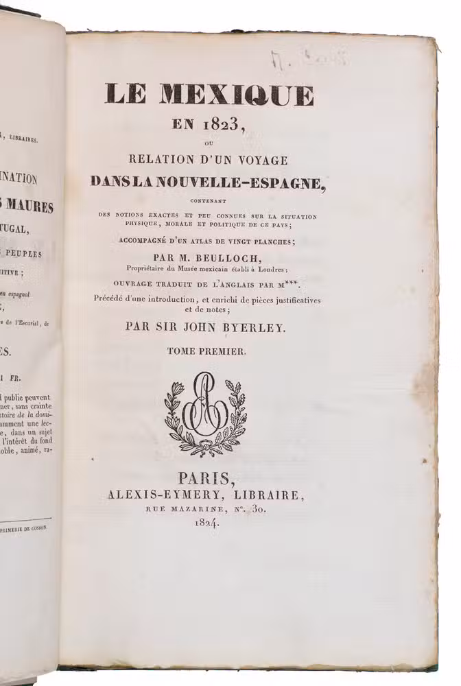 Very rare first edition of the French translation of this important relation on Mexico by William Bullock (ca. 1773-1849), an English traveller, naturalist and antiquarian. He began as a jeweller and goldsmith in Sheffield, moved to Liverpool and brought together an interesting collection of natural history and art items. He founded a private museum in 1800 which he moved to London in 1810 and was housed in the newly built "Egyptian Hall". In 1822 and 1823, Bullock went by way of Jamaica to Mexico, being the first English traveller in Mexico since Thomas Gage (ca. 1603-1656) in 1640. Bullock visited many places and ancient monuments, of which extensive descriptions can be found in the present work. Attention is given to a wide range of subjects, including the history, geology, geography, flora and fauna of the country, and the culture, religion and commerce of its inhabitants. The many Mexican artefacts and specimens he brought to England, were exposed in his museum. In 1824, the original English edition of his travel accounts appeared, soon followed by French, German and Dutch translations.