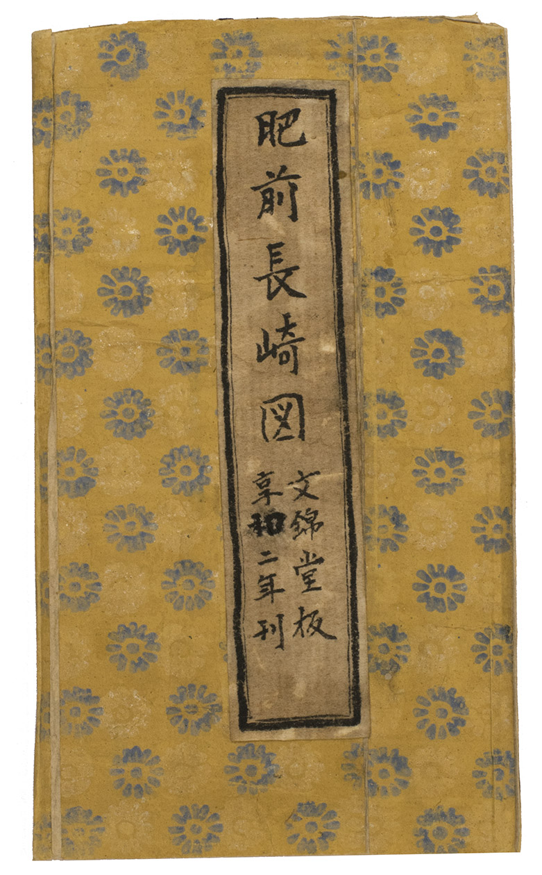 Fine map in original publishers etui. Some minor wear at folding areas. Cf. Mc Govern,'List of Nagasaki maps', in: 'Imago mundi,' 15 (1960), p.108 (Bunkindo Han ed. of 1802); H. Bosma, Kômô-Jin. Roodharige vreemdelingen op Deshima (Exhib. cat. Vrije Universiteit, Amsterdam, 1983), 12 (Bunkindo Han ed. of 1802); Maggs Bros, Cat. 1311, 223 (Ohata Bunjiemon ed. of 1778).