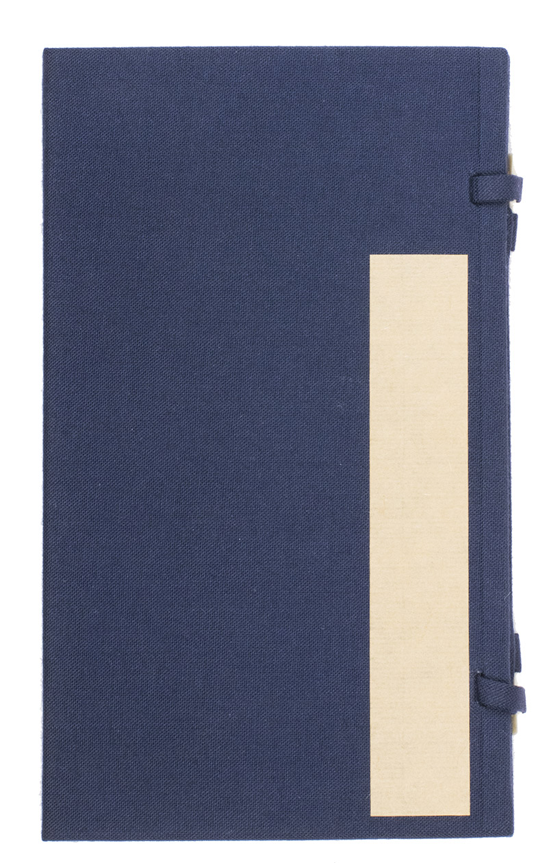 [Nagasaki, Bunkindo, 1821]. 61.5 x 87 cm. Large folding woodcut map of the port and city of Nagasaki, printed in three colours (ochre, blue and green) on four sheets. In Japanese ochre paper etui decorated with blue and white flowers and title label with Japanese characters pasted on, preserved in later dark blue cloth slipcase in Japanese style closing with two ivory clasps.