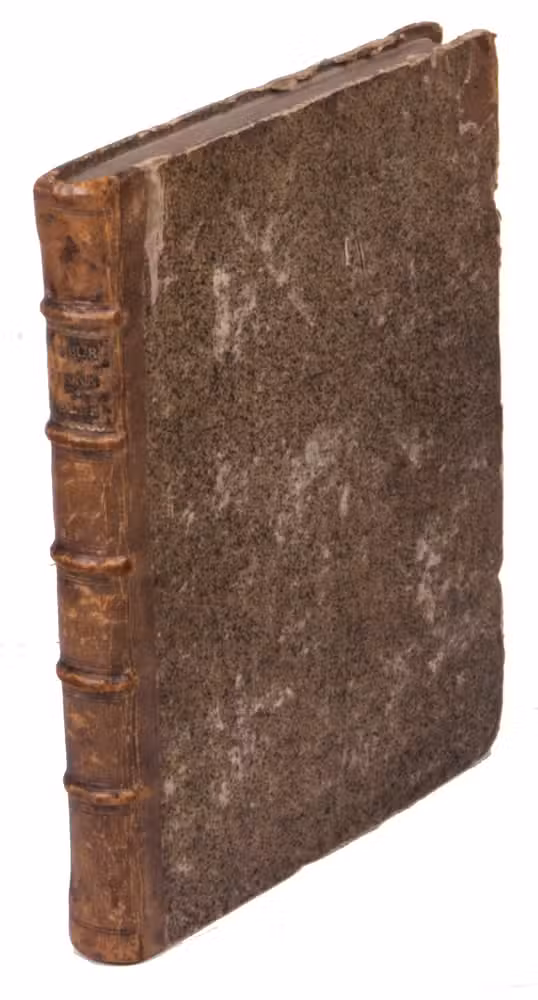 Binding heavily rubbed. With a stain and a few small clean tears in the inner margins of 7 leaves, otherwise internally in very good condition. Landwehr, Emblem Books Low Countries 92 (cf. 786); Praz, p. 292 (cf. pp. 509-510); STCN (8 copies); cf. Hippisley, The First Russian Emblem Book.