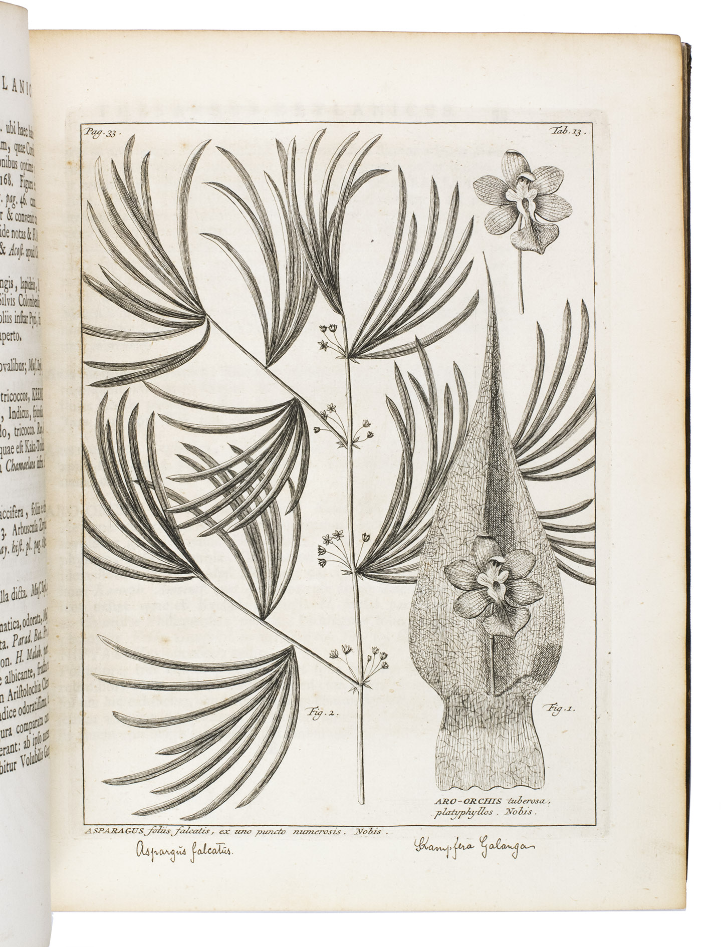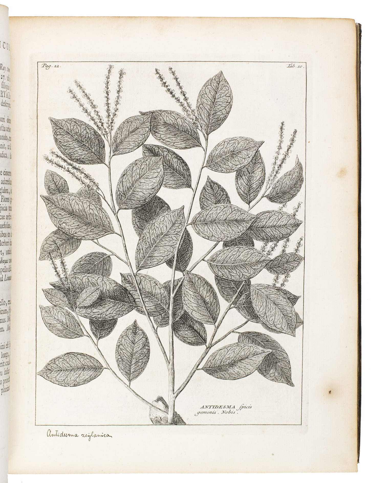 First and only edition of the first illustrated description of the plants of Sri Lanka, complete with 111 detailed etchings, and the portrait of the author. The plants were taken from Ceylon (Sri Lanka), but most were not exclusive to that island and grew throughout the entire South Indian Ocean region, making the work relevant for more than just Ceylon. The work was composed with the help of Carl Linnaeus (1707-1778), who helped to perfect it, and even referenced it in his Species plantarum (1753).