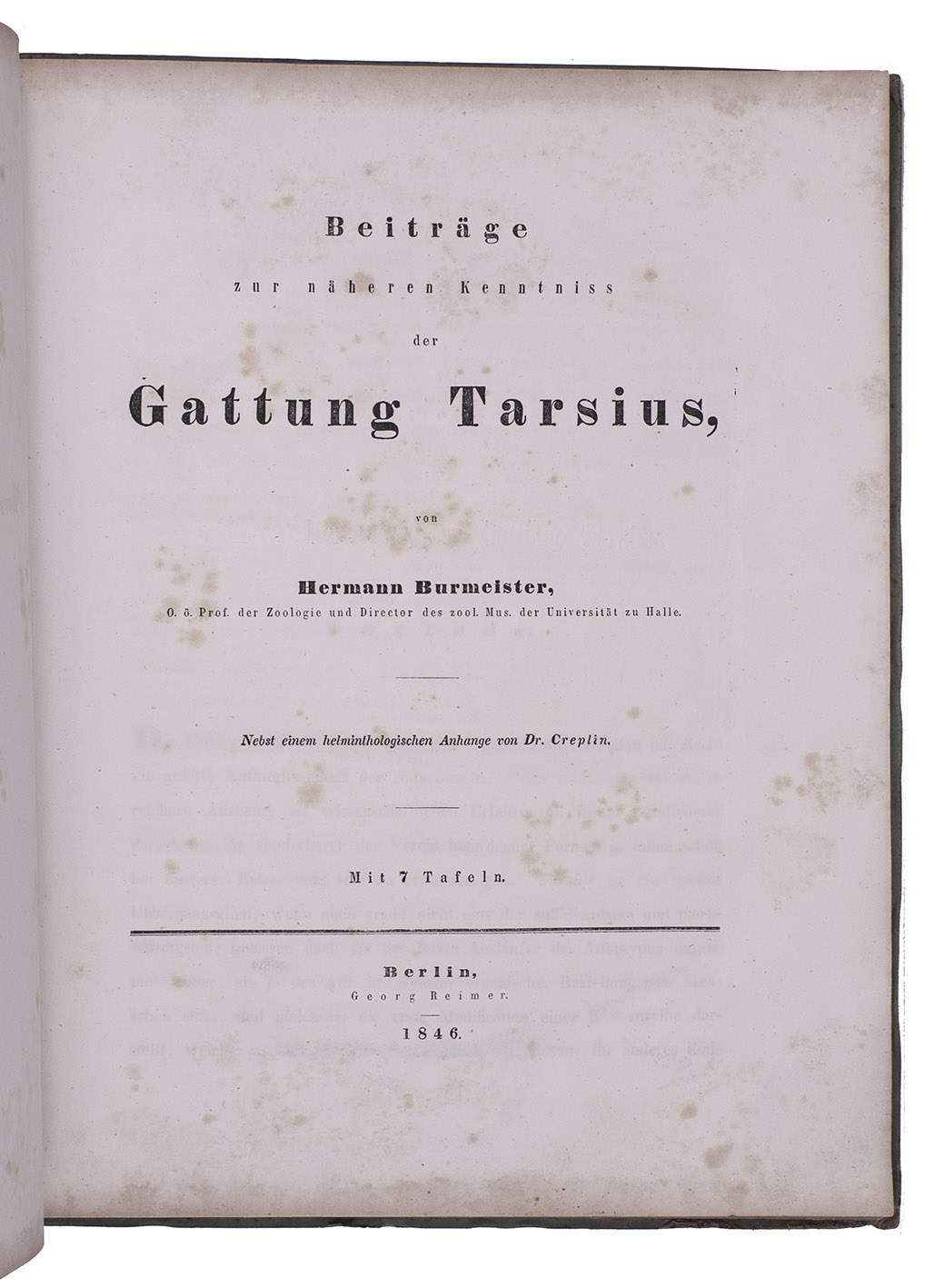 Beiträge zur näheren Kenntniss der Gattung Tarsius, ... Nebst einem helminthologischen Anhange von Dr. Creplin.