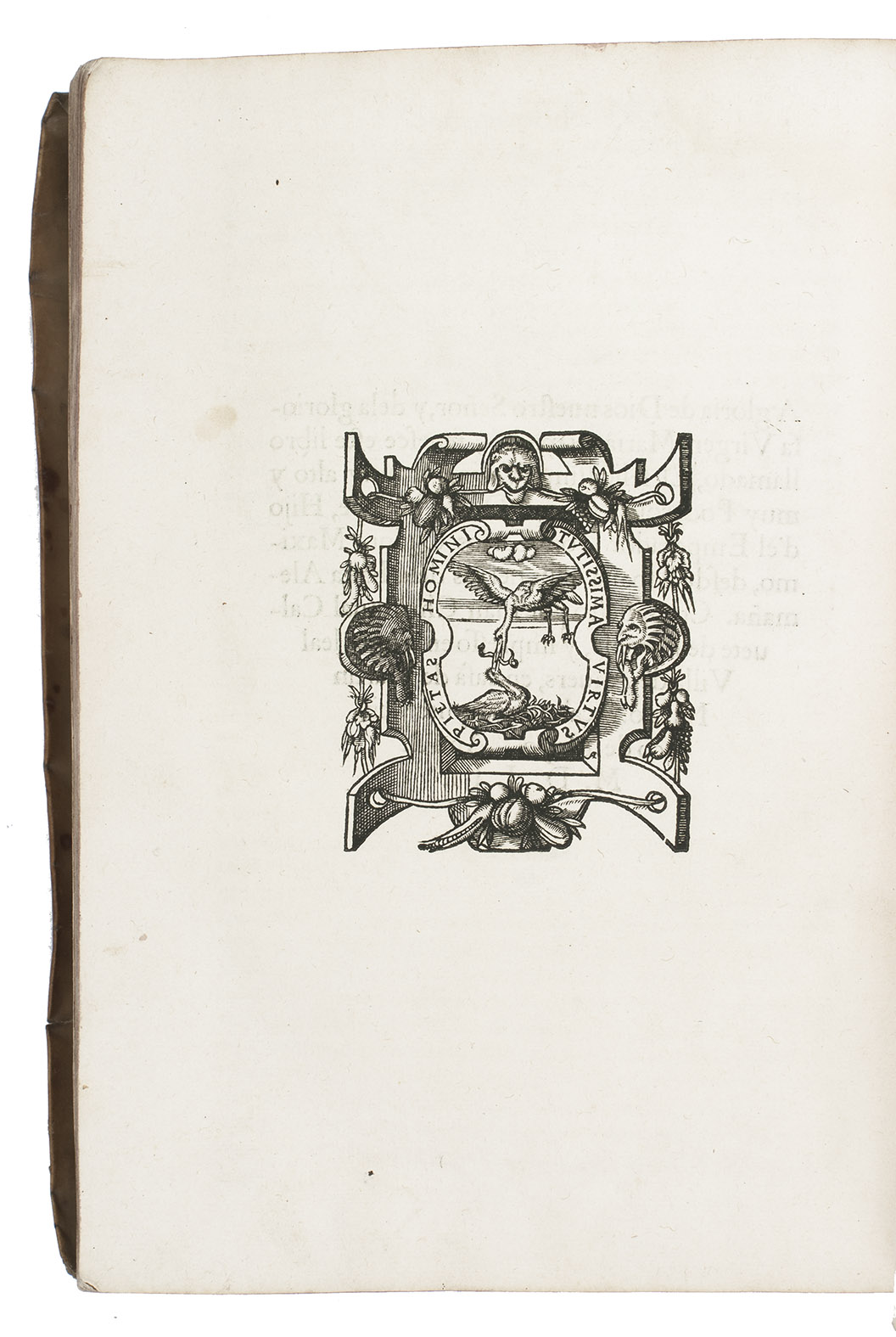 Antwerp, Martinus Nutius I, 1552 (colophon 25 May 1552). Small folio (27 x 19.5 cm). With the woodcut arms of Charles V on title-page, a full-page woodcut triumphal arch erected in Ghent for Philip's entry, Nutius's woodcut device at the end, and dozens of woodcut decorated initials (4 series). Near contemporary limp vellum, with 6 fragments of a 16th-century manuscript reinforcing the spine of the bookblock, blind- and (later) gold-tooled spine. [8], 335, [19] ll.