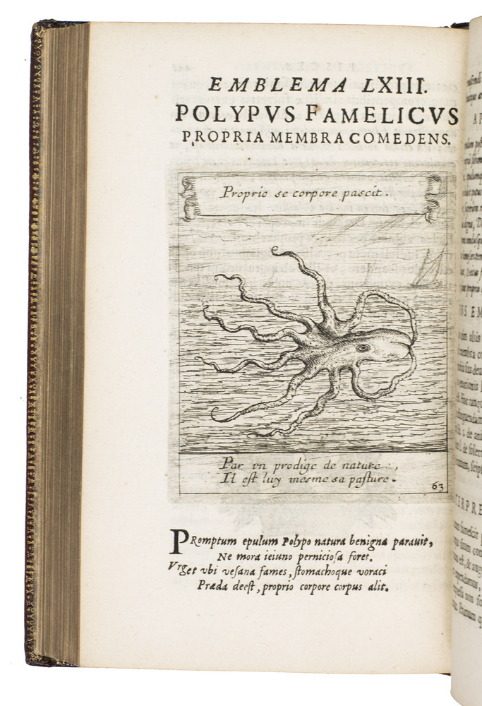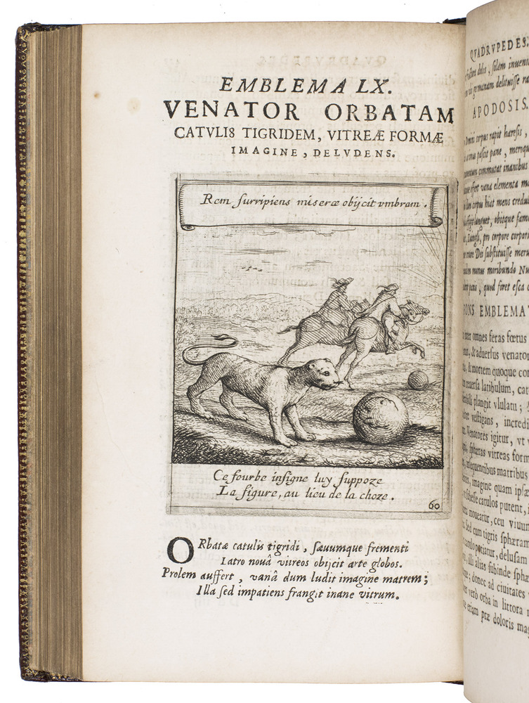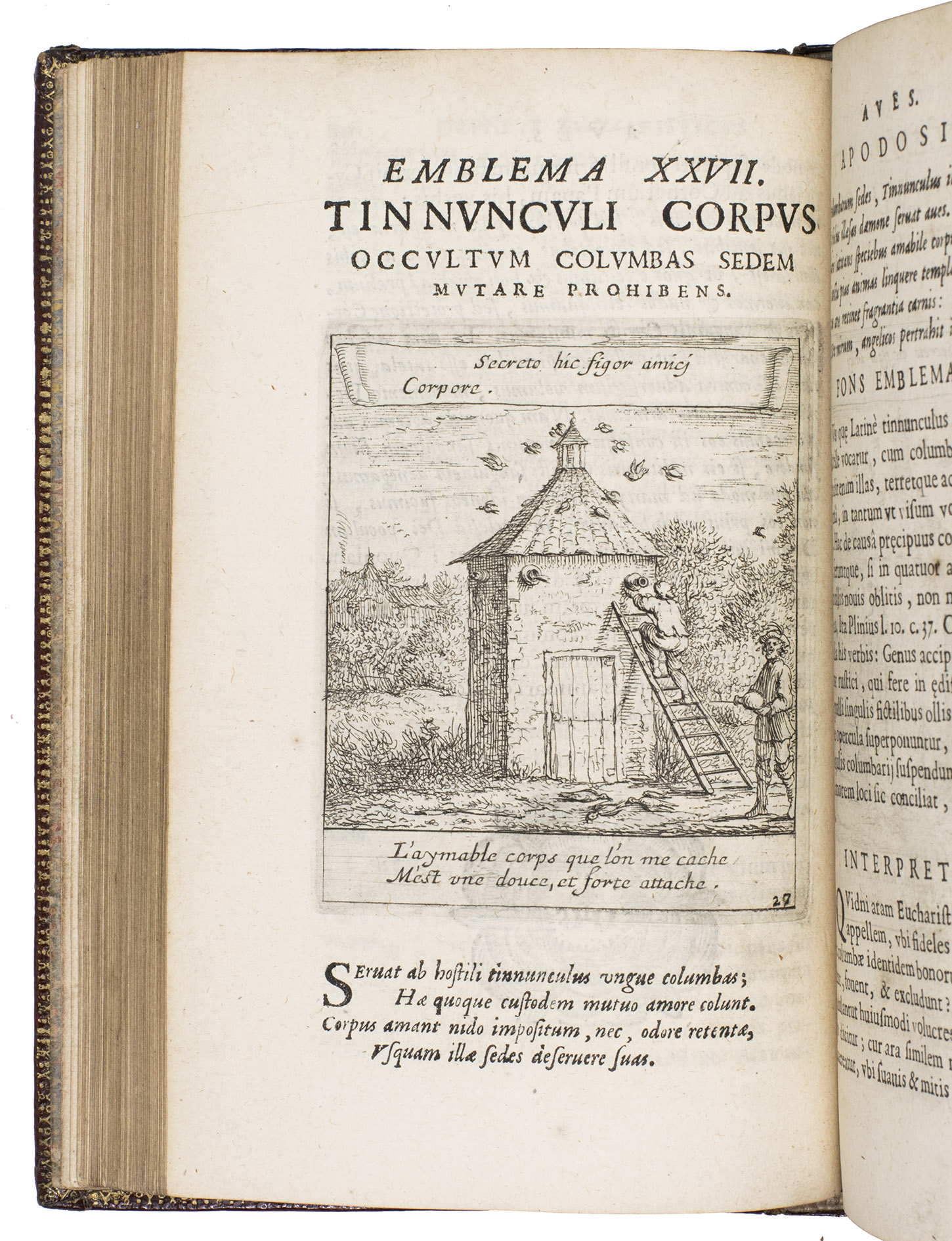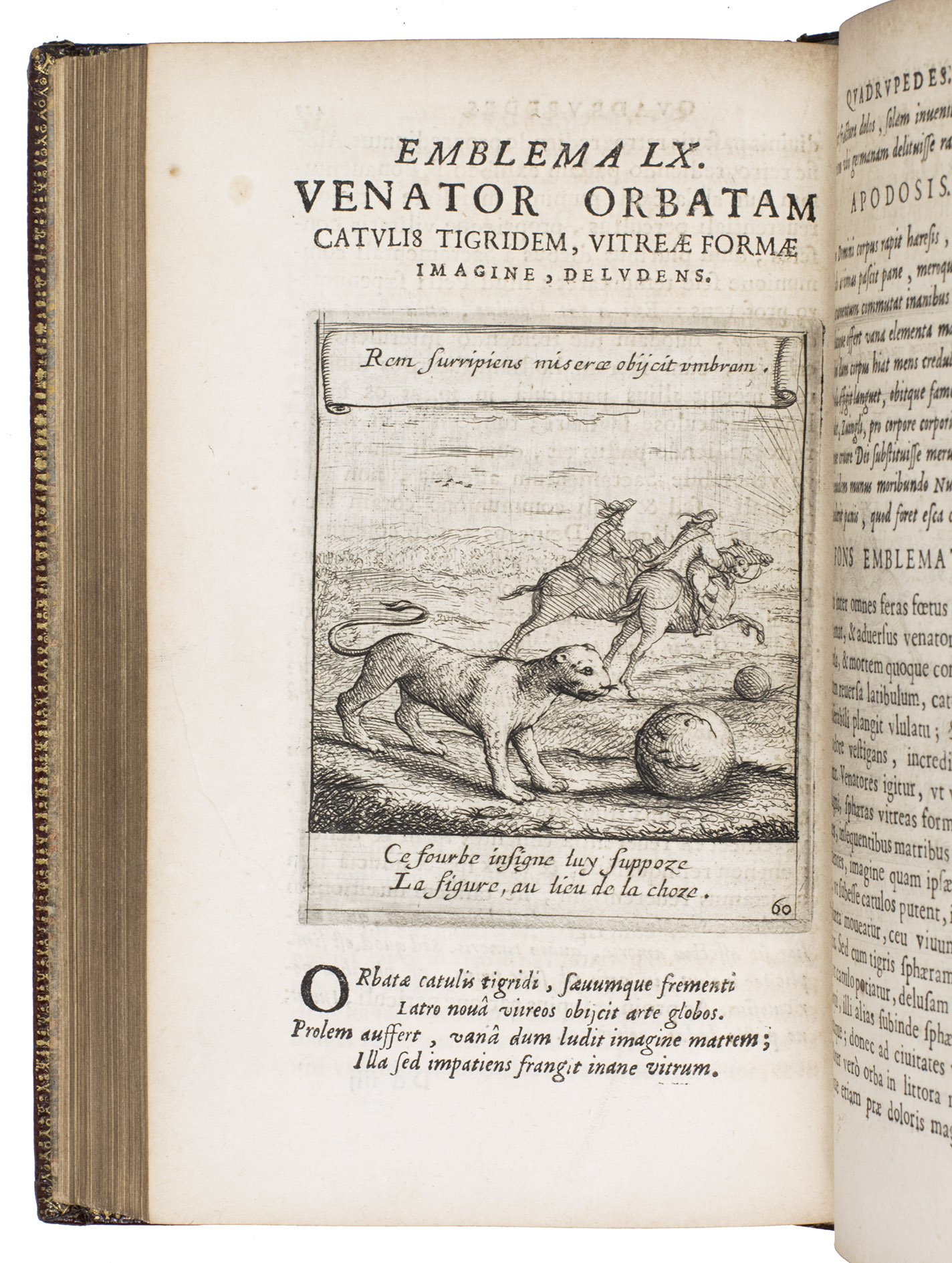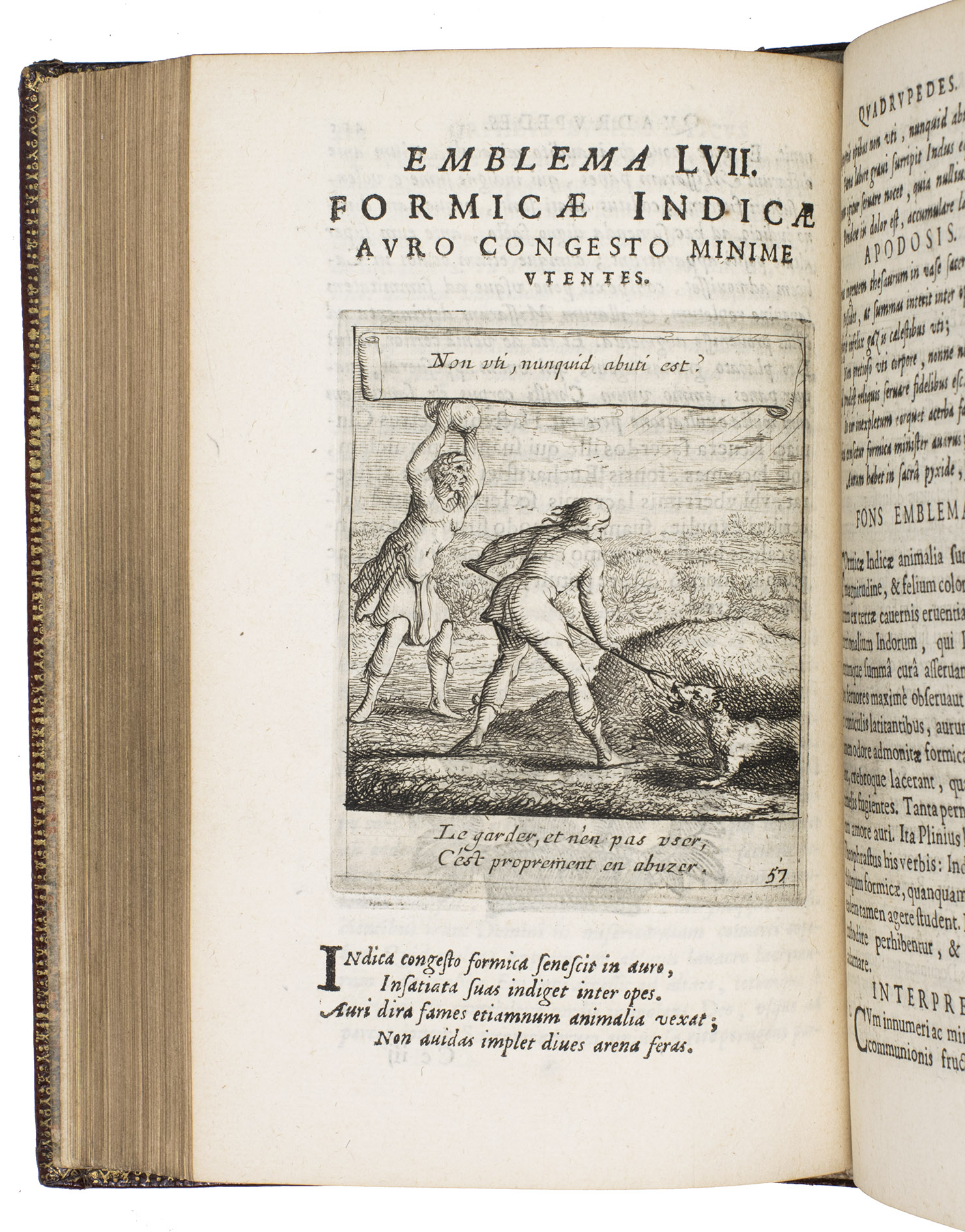Binding with minor traces of use; p. 353 with small part of blank margin restored. Very good copy in red morocco. Adams, Rawles and Saunders F.181; Landwehr, Romanic Emblem Books 224; Praz 304; not in USTC.
