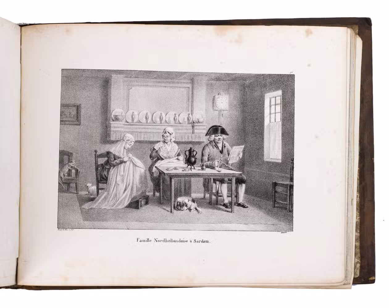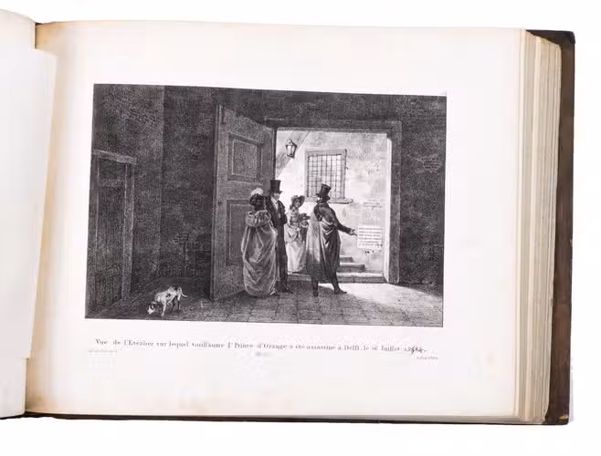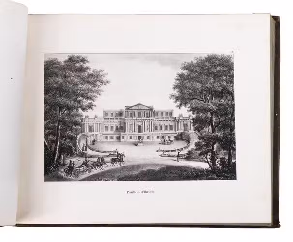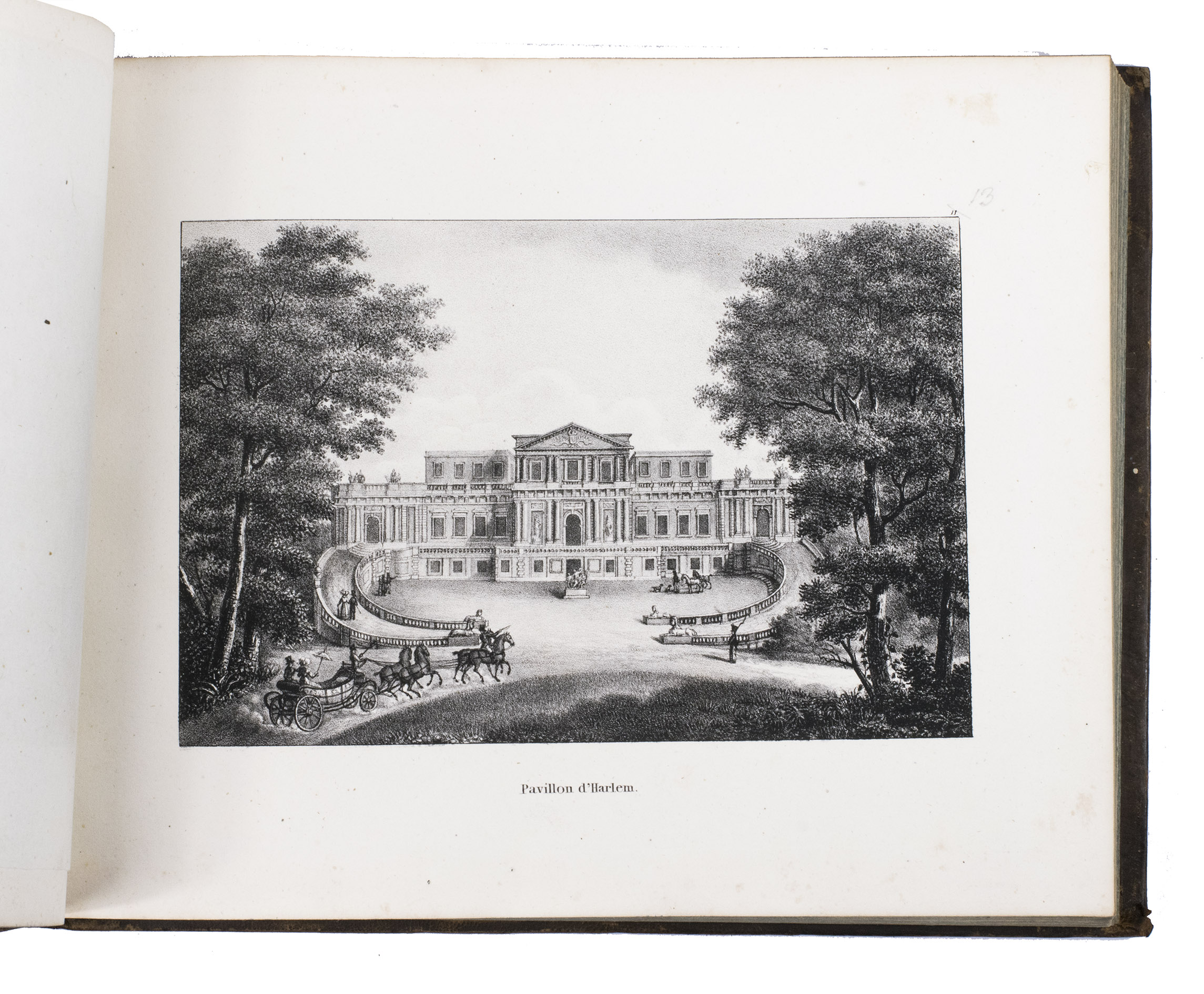 Brussels, J.B.A. Jobard, 1827-1829. 2 parts in 4 volumes. Oblong 4to. Each volume with a lithographed title page. The whole work comprises 407 full-page lithographic plates protected by tissue paper guards, 2 folding maps, and a lithographic portrait. Contemporary gold-tooled marbled calf.
