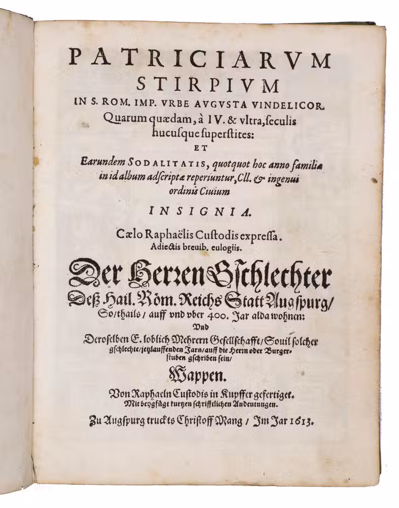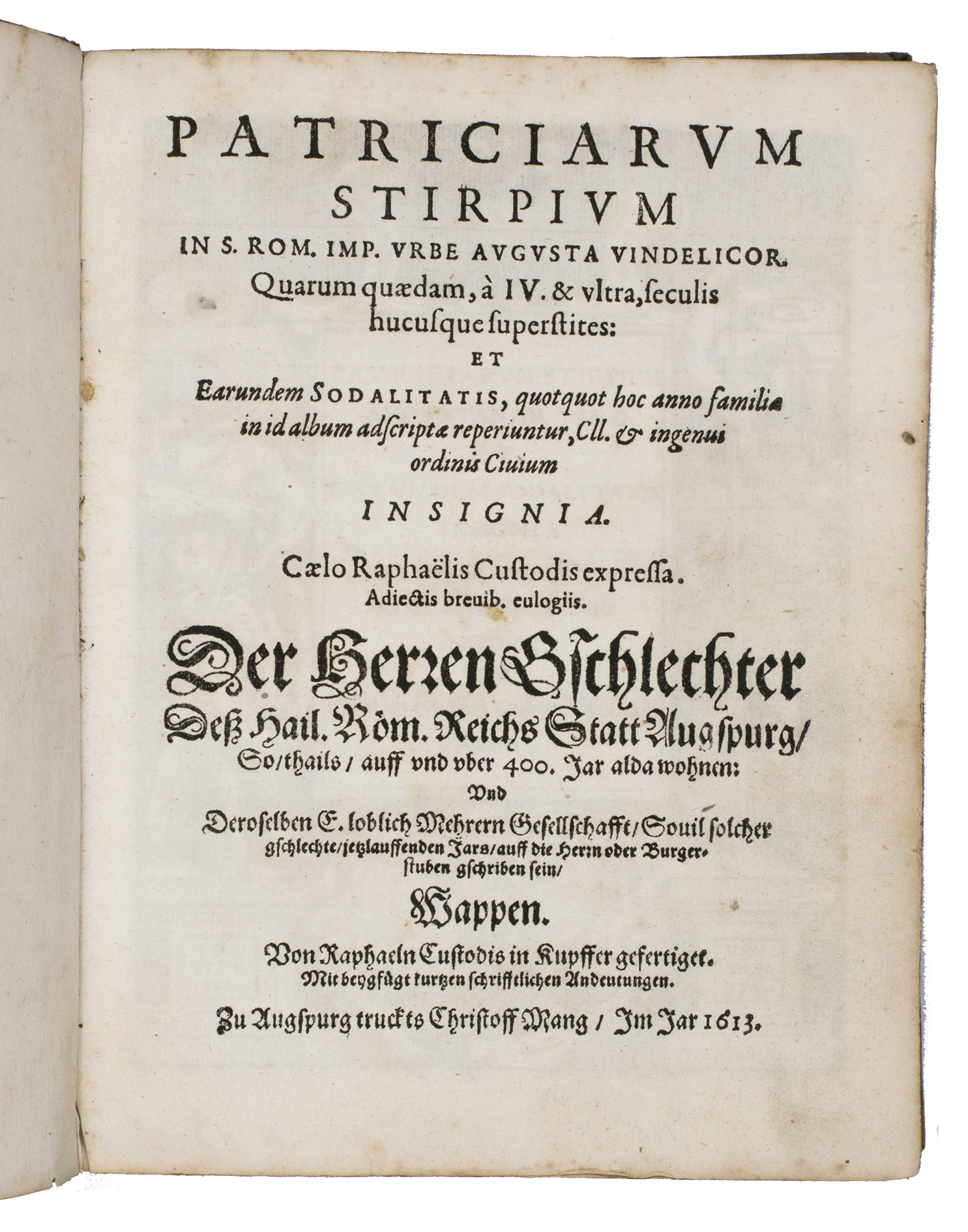 Patriciarum stirpium in S. Rom. Imp. Urbe Augusta Vindelicor ... | Der herren Gschlechter deß Hail. Röm. Reichs Statt Augspurg ...
