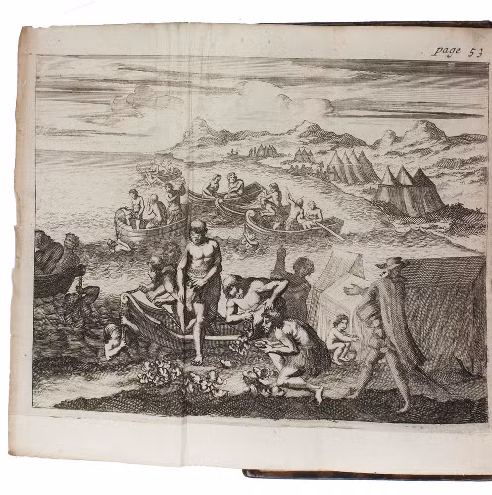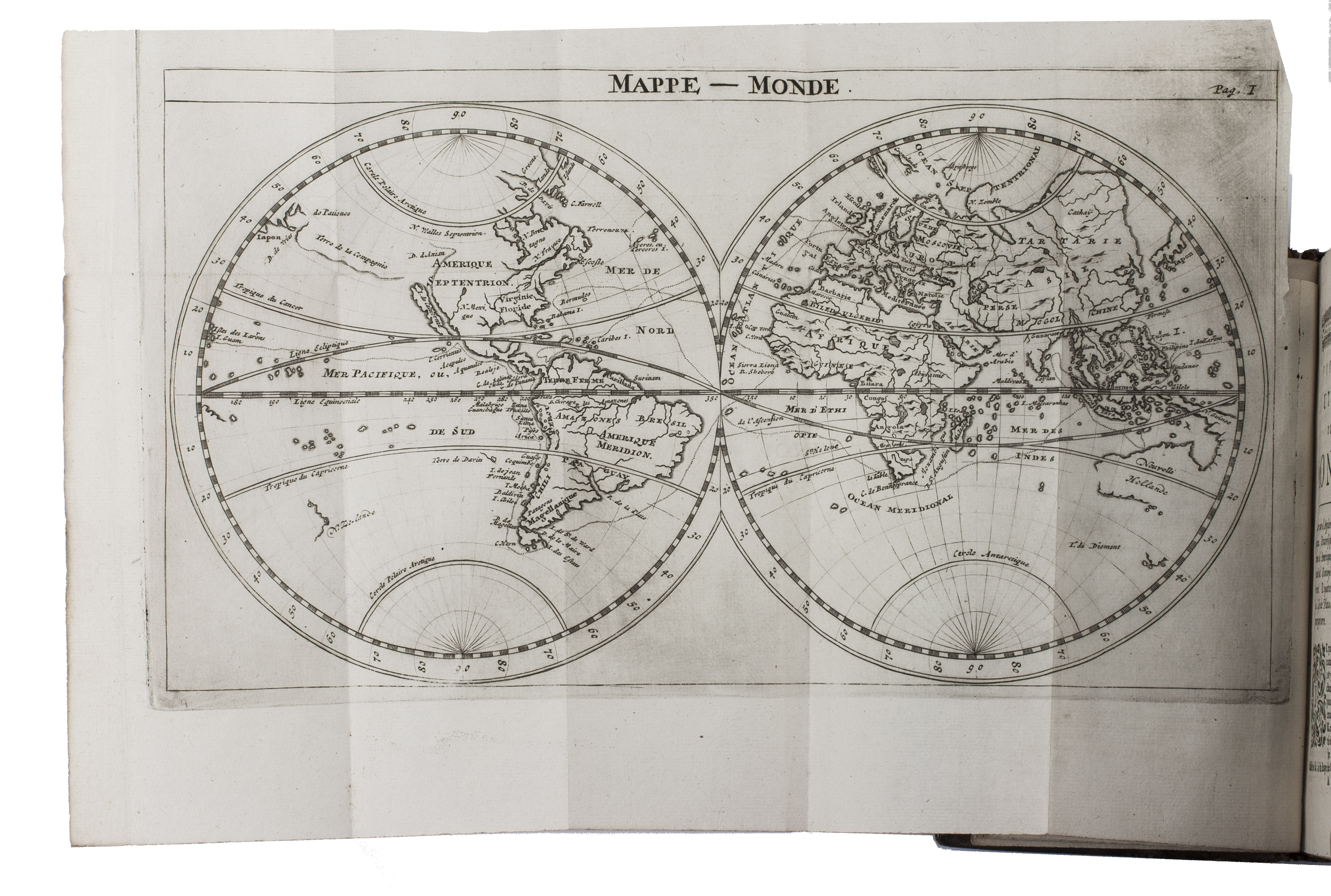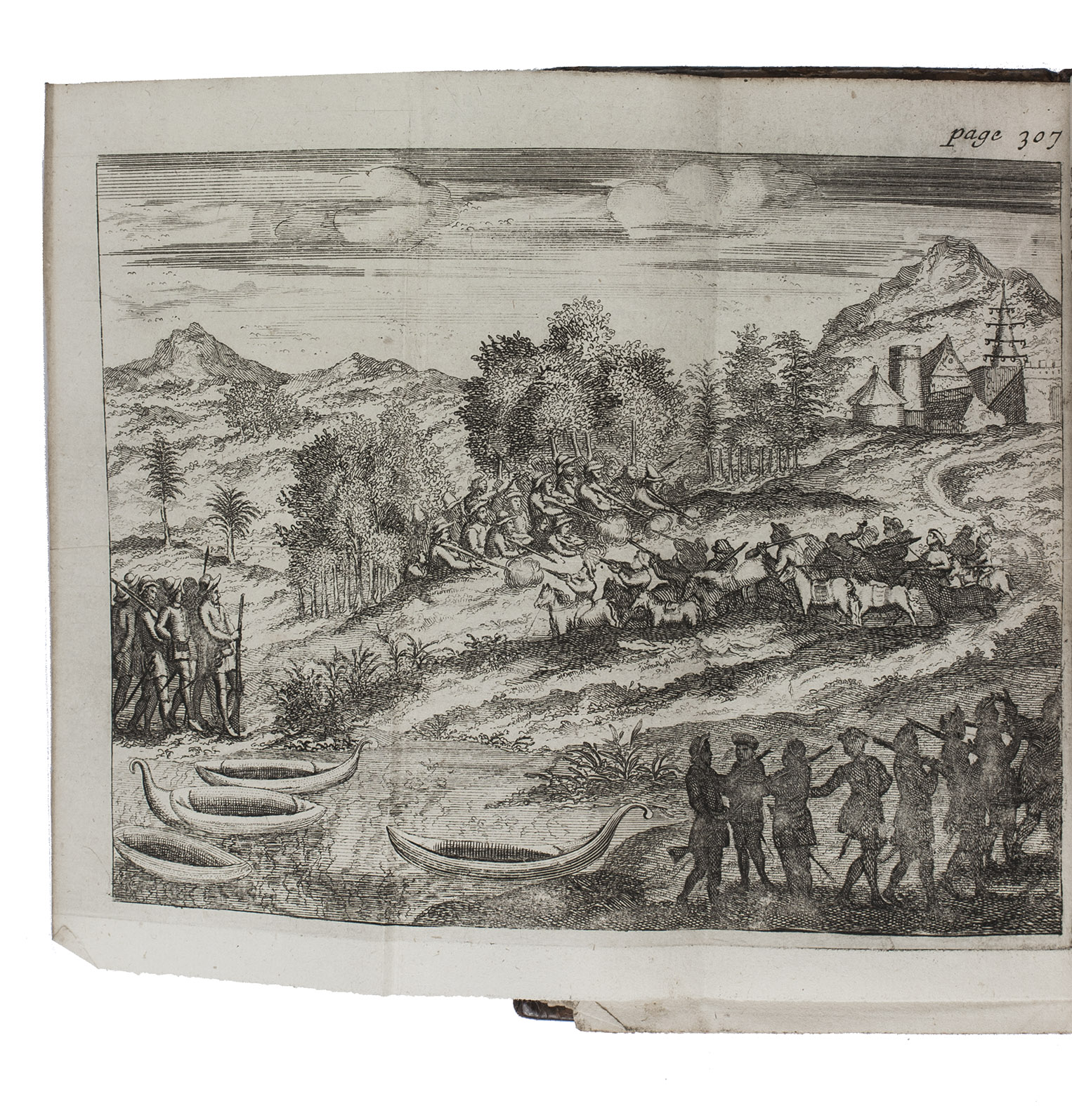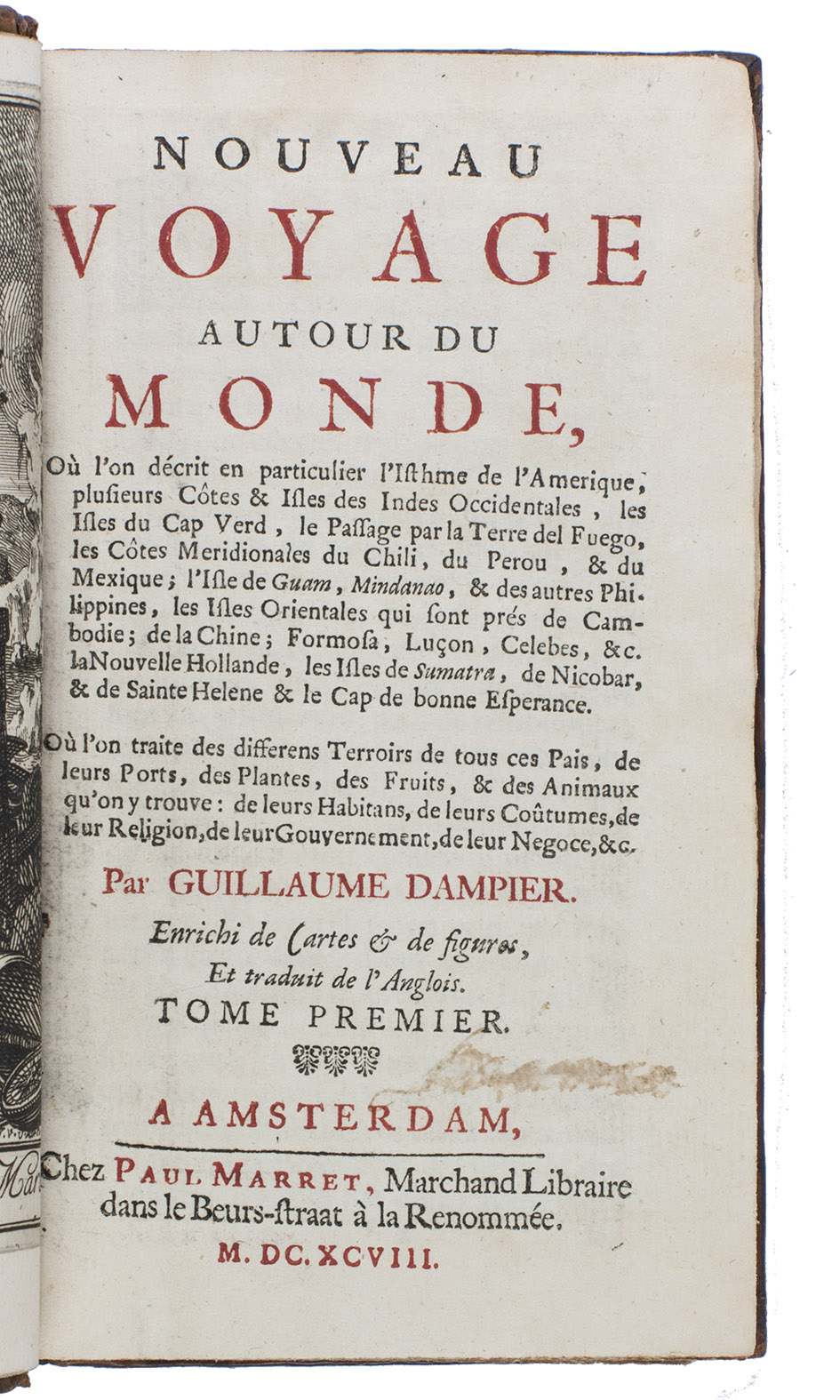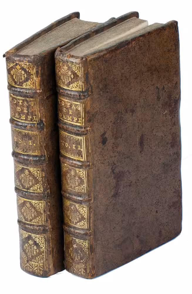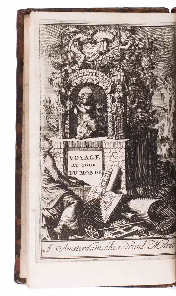 First French edition of William Dampier's account of his voyage around the world and especially to the south seas in the years 1683 to 1691. Dampier (1651-1715) sailed to Sierra Leone, from there to the Falkland Islands, Cape Horn, Peru, Guatemala, Mexico, the Philippines, Vietnam, China, Indonesia, and further to New Guinea, in the area which was to become known as Dampier Land. He went ashore in Australia, sailed on to Sumatra, the Cape of Good Hope, and back to Europe. Although John Brooke probably shipwrecked on the Australian coast in 1621 without knowing what it was, Dampier was otherwise the first Englishman to set foot in Australia. Dampier had spent several years as a buccaneer, but in the present book he diplomatically made no attempt to exploit the more sensational aspects of his adventures, concentrating on hydrographic, geographic and scientific details. This helped him establish his legitimacy, bringing immediate academic acclaim rather than condemnation as a pirate.