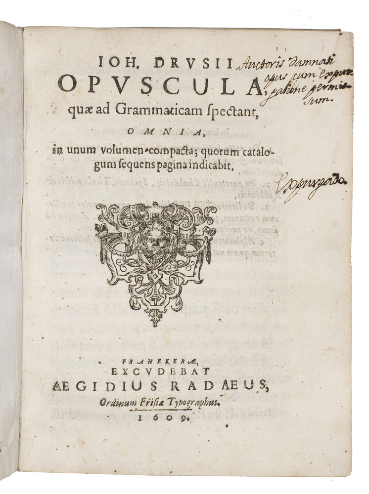 Ad 1: Re-issue under a joint title of two works on the Hebrew and other languages of the Holy Scripture by the Franeker professor and orientalist Johannes Drusius (1550-1616). Drusius had first published these works for the benefit of his students in Franeker where he was a professor of Oriental languages from 1585 onwards.