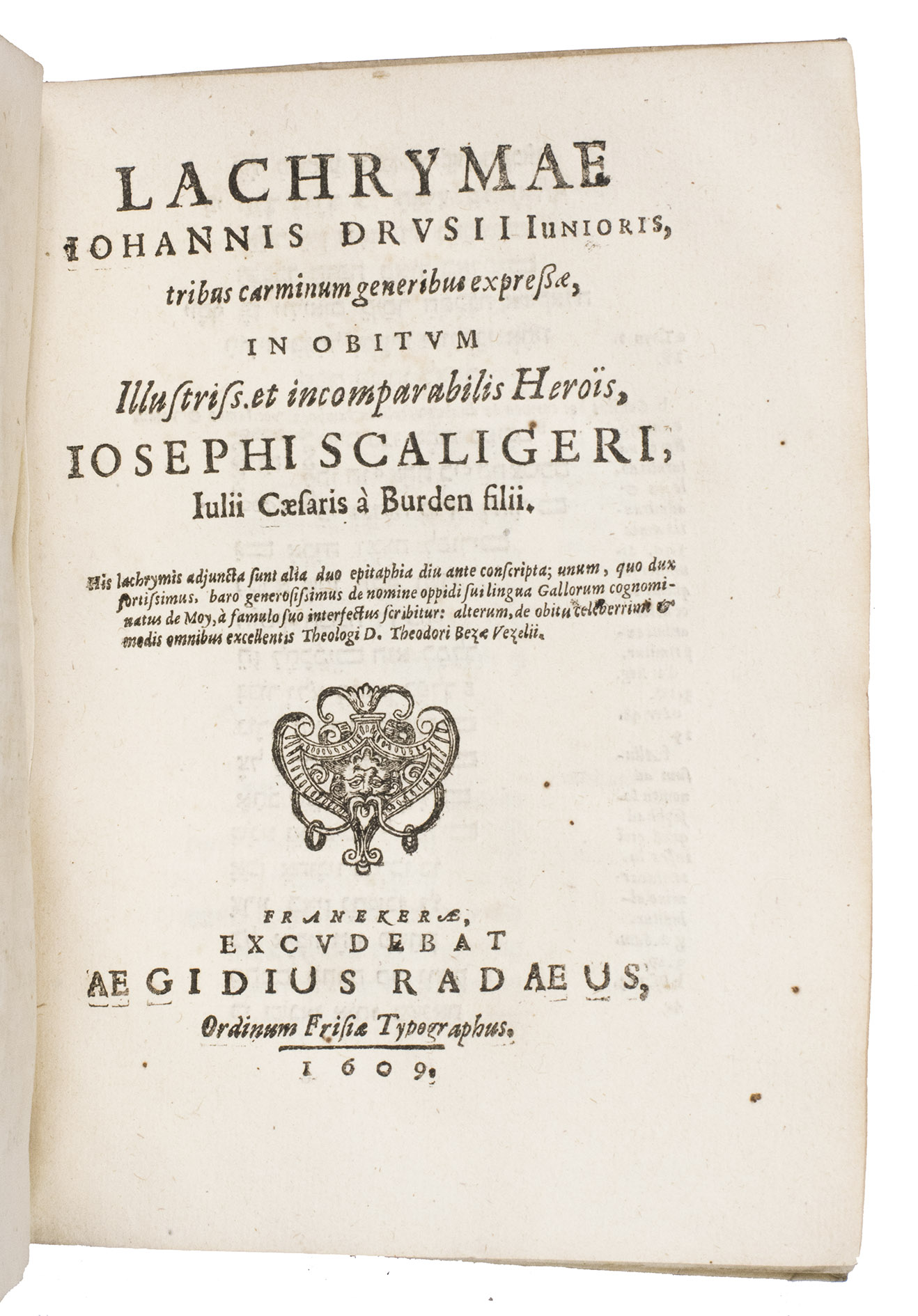 (3) DRUSIUS, Johannes (junior). Lachrymae, Iohannis Drusii Iunioris, tribus carminum generibus expressae, in obitum illustriss. et incomparabilis Heroïs Josephi Scaligeri.