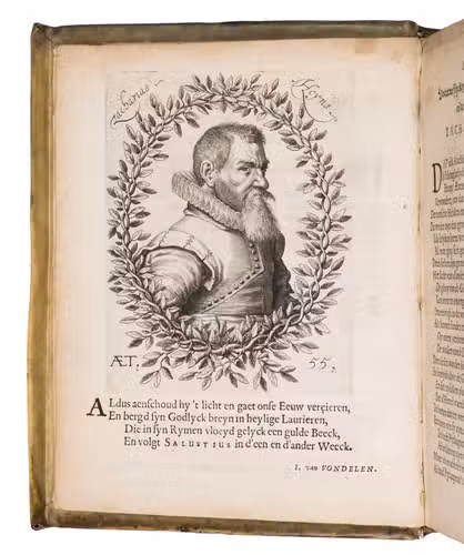 The first translation into Dutch by Theoderick van Liefvelt (1555-1624) was published in Brussels in 1609. By far the most important translation, represented in our copy, was made by Zacharias Heyns (ca. 1566-ca. 1638). A third translation appeared in 1622 and was made by Rutger Wessel baron van Boetzelaer (1566-1632).